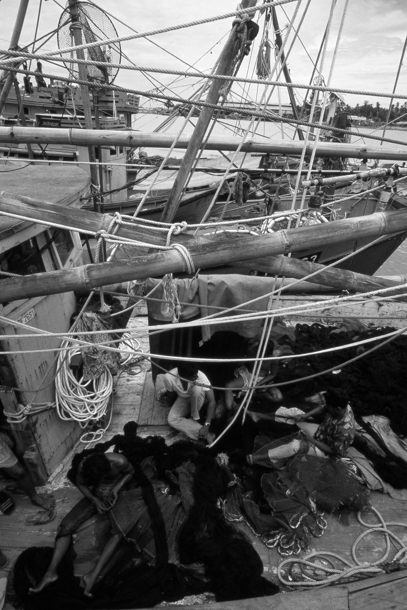 Marco Casiraghi, milanese, laureato in filosofia, inizia la sua carriera di fotografo e giornalista nel 1981. Subacqueo e velista, ha navigato in tutti gli oceani. L'uomo, le culture, le tradizioni legate al mare, sono i temi principali dei suoi lavori. Specializzato nel reportage geografico e nautico, collabora con le principali testate del settore in Italia, Francia e Spagna. Con il Touring Club ha pubblicato il libro fotografico : “ Mondi sull’Acqua: vita galleggiante nel Sud Est asiatico”. Gran parte di queste immagini sono state scattate negli anni ‘80/’90 a bordo di svariate imbarcazioni durante decine di fotoreportages nautici e geografici commissionati da testate italiane, francesi e spagnole. In particolare, quelle nei mari orientali, a bordo dello storico ketch oceanico Stormvogel. L’attualità di questo archivio storico, da cui ho selezionato una piccola nicchia tematica,è sempre valida dal momento che ancora oggi, in tutti i mari fotografati, le stesse comunità etniche, come i Vezo del Madagascar, i Moken birmani, i Bajau indonesiani, o i pescatori di balene di Lamakera, sopravvivono grazie al mare. Mentre lungo le coste del Mar della Cina migliaia di pescherecci d’altura, cinesi, vietnamiti, malesi e tailandesi, strascicano kilometri di reti infernali. Così come la pesca dello squalo, dei trepang, del corallo e conchiglie, e come novità la coltivazione estensiva delle alghe, prosegue inesorabile ovunque.