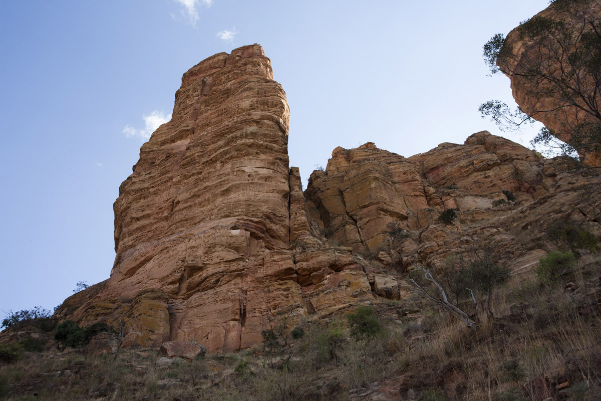 Salì lentamente fino ai piedi della roccia più alta, e tolte le scarpe si arrampicò sulla parete liscia, sfruttando i pochi appoggi per far forza con le mani ed i piedi.