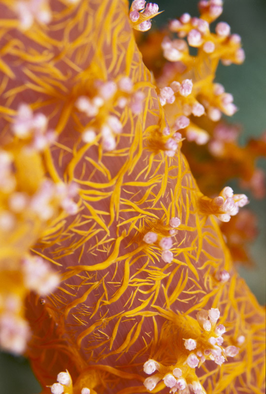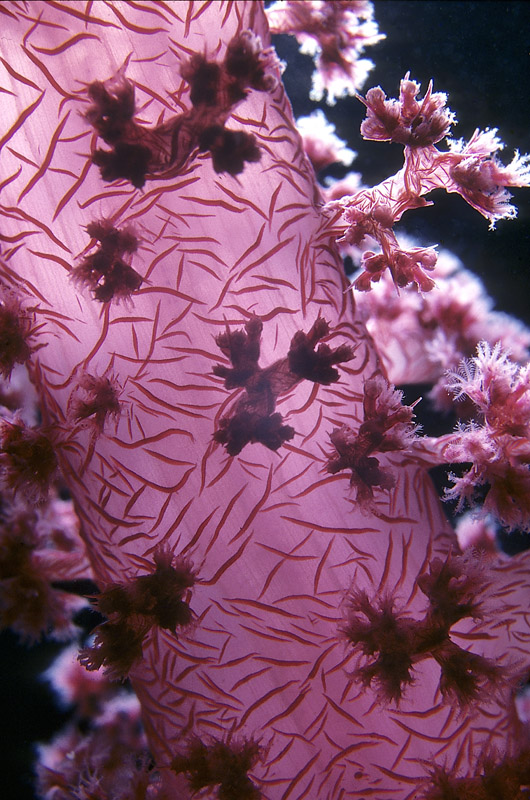 Ancorati al fondo, incapaci di muoversi o di rintanarsi è difficile non osservare questi animali (sempre che ci si trovi in un pezzo di reef le cui condizioni ambientali ne favoriscono l'insediamento e la crescita). Con la giusta calma, un occhio allenato e comunque nel massimo rispetto, si può passare da una osservazione di ambiente ad una osservazione del dettaglio, concentrandoci su quel microscopico universo di piccoli "coinquilini" che si nascondono tra i tentacoli dei polipi e che si mimetizzano sfruttando il colore degli alcionacei stessi: gamberetti quasi sconosciuti del genere Hippolithae, piccoli ghiozzi, granchi decoratori o piccoli ovulidi che a volte si nutrono dei polipi stessi della colonia.