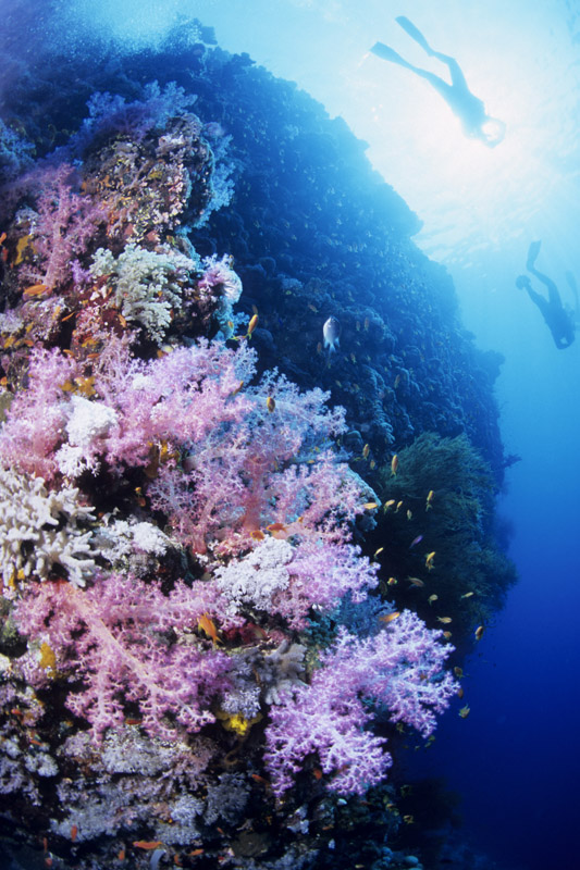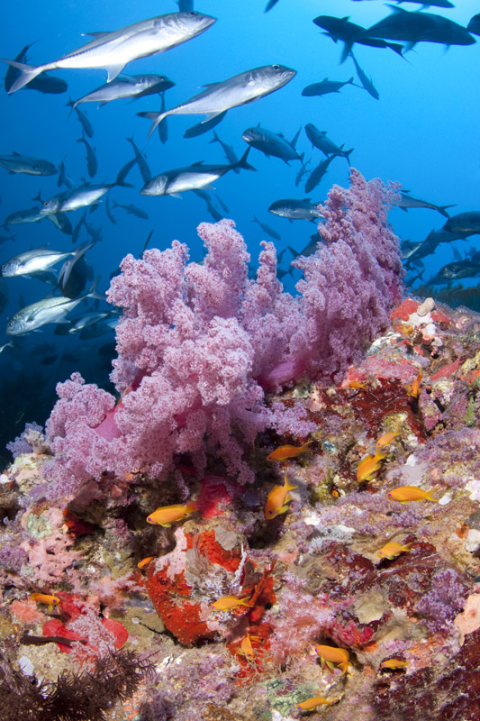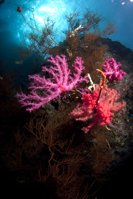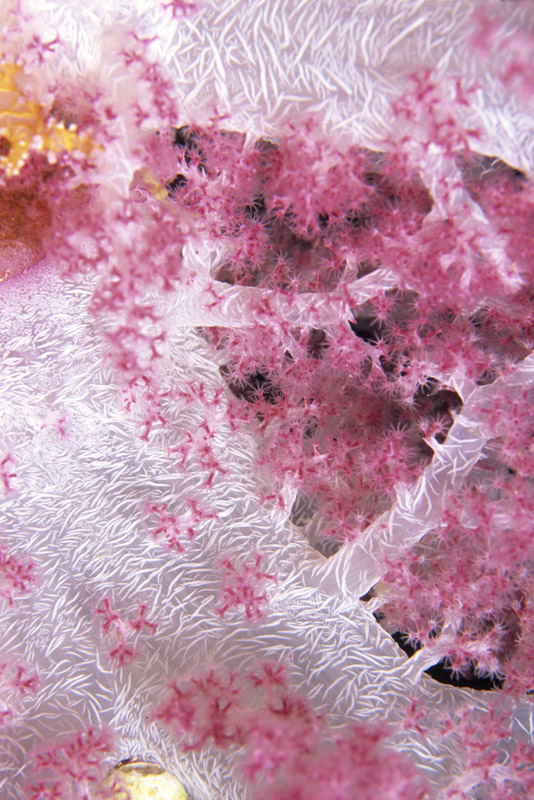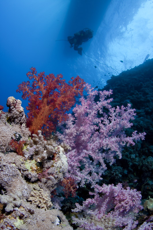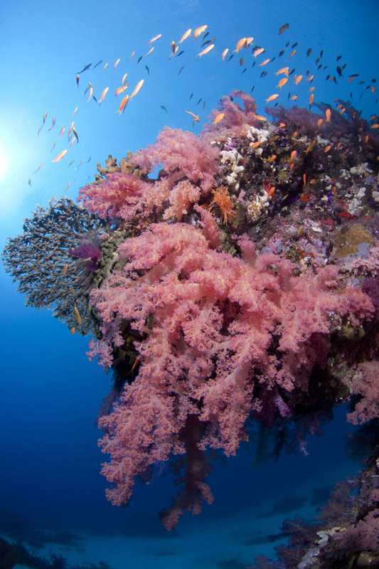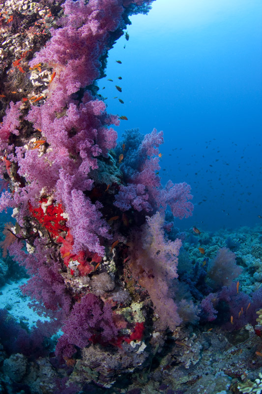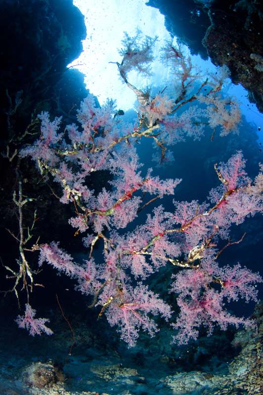 I coralli molli sono tra i soggetti marini più fotografati nelle acque del Mar Rosso grazie alla loro bella colorazione brillante che offrirà all'immagine una splendida botta di colore. Quelli che noi chiamiamo volgarmente con il nome di alcionari e che tappezzano le pareti dei nostri reef, potranno diventare il soggetto principale delle nostre immagini ma anche solo una macchia di colore necessaria a riempire lo scatto. Particolare attenzione dovrà essere data alla corretta esposizione dato che capiterà di trovarci di fronte a soggetti di diversi colori in particolare alcuni esemplari di coralli molli dalle forti tonalità bianche affiancati ad altri dalle tonalità meno accese. In questo caso sarà importante compensare correttamente l'esposizione facendo attenzione ai bianchi che non risultino sovraesposti. Tutto questo considerando che se stiamo fotografando con un grandangolo, magari in controluce, sarà importante non perdere di vista anche il blu del mare. Per gli amanti della macro saranno innumerevoli gli spunti che ci offriranno i coralli molli per realizzare immagini altrettanto stimolanti. Piccoli animali che hanno costituito il loro habitat sui coralli molli saranno il soggetto principale dei nostri scatti mentre sullo sfondo i bei colori accesi degli alcionari faranno da quinta al soggetto principale.