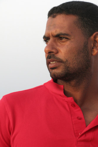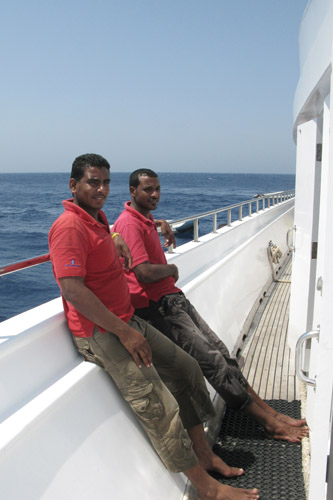sul ponte. Il capitano Said imposta la rotta e dai suoi gesti traspaiono