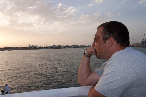 Dopo cena ci ritroviamo tutti sul ponte per condividere impressioni ed emozioni della prima giornata e vedere alcune fotografie scattate dai compagni. Poi, stanchi ed appagati, filiamo tutti a nanna! La nostra cabina è sul ponte superiore e questo ci permette di addormentarci con la porta aperta, cullati dallo sciabordio del mare e dall’aria fresca. Come ormai di consuetudine non riesco ad aspettare la sveglia “ufficiale” della campana; all’alba sono già sul ponte di comando assieme al capitano Abdhallah, al timone da ore per permetterci di svegliarci alla prossima tappa, Qita el Banna, dove effettuiamo due immersioni ed incontriamo i nostri primi squali martello sudanesi. Curiosità e timore saranno le emozioni che mi accompagneranno per due settimane, ma per mia fortuna Hamam è sempre a portata di mano, dato che Giorgio, mio compagno d'immersione è presissimo con la sua nuova videocamera.