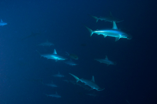 Sulla via del ritorno, siamo nuovamente a Sha’ab Rumi, dove ritroviamo squali grigi, carangidi ed un bel branco di martelli.