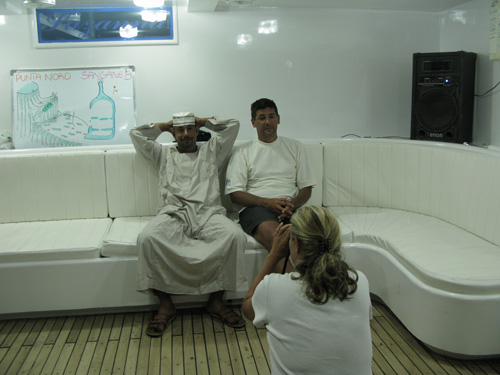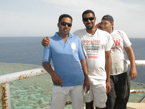 E grazie soprattutto all’instancabile equipaggio della Suzanna, sempre allegro e sorridente, disponibile e facile allo scherzo, Abdhallah, Samy, Gamal, Mahmud, ma anche a Said, Talal, Gasem, Hamada, i marinai, sempre pronti a darci una mano a vestirci, spogliarci, a salire e scendere dal gommone (soprattutto a tirarmi in gommone dopo l’immersione, rotolante come una foca), e, quando ci riuscivano, a ributtarci in acqua per scherzo.