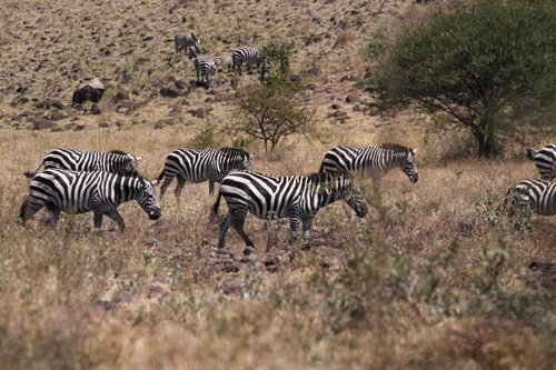 Alla vista di questa scena nemmeno noi ci sentiamo poi così al sicuro sulla nostra modesta e barcollante barca. I coccodrilli, per quanto apparentemente immobili, sono lunghi almeno due volte la nostra imbarcazione. Giungiamo comunque sani e salvi sulla sponda opposta approdando sulla spiaggia del Nechisar Park. Le aquile pescatrici volteggiano sopra le nostre teste, forse sperando in un nostro passo falso, mentre le scimmie sono ovunque. Pellicani e aironi abitano le piccole isolette di sabbia vicino alle rive. Dopo un breve trekking, in cima a una collinetta ci attende una famiglia di zebre che sta scendendo al lago per abbeverarsi.