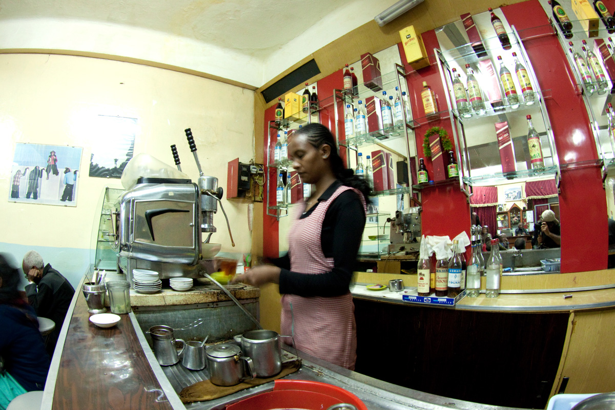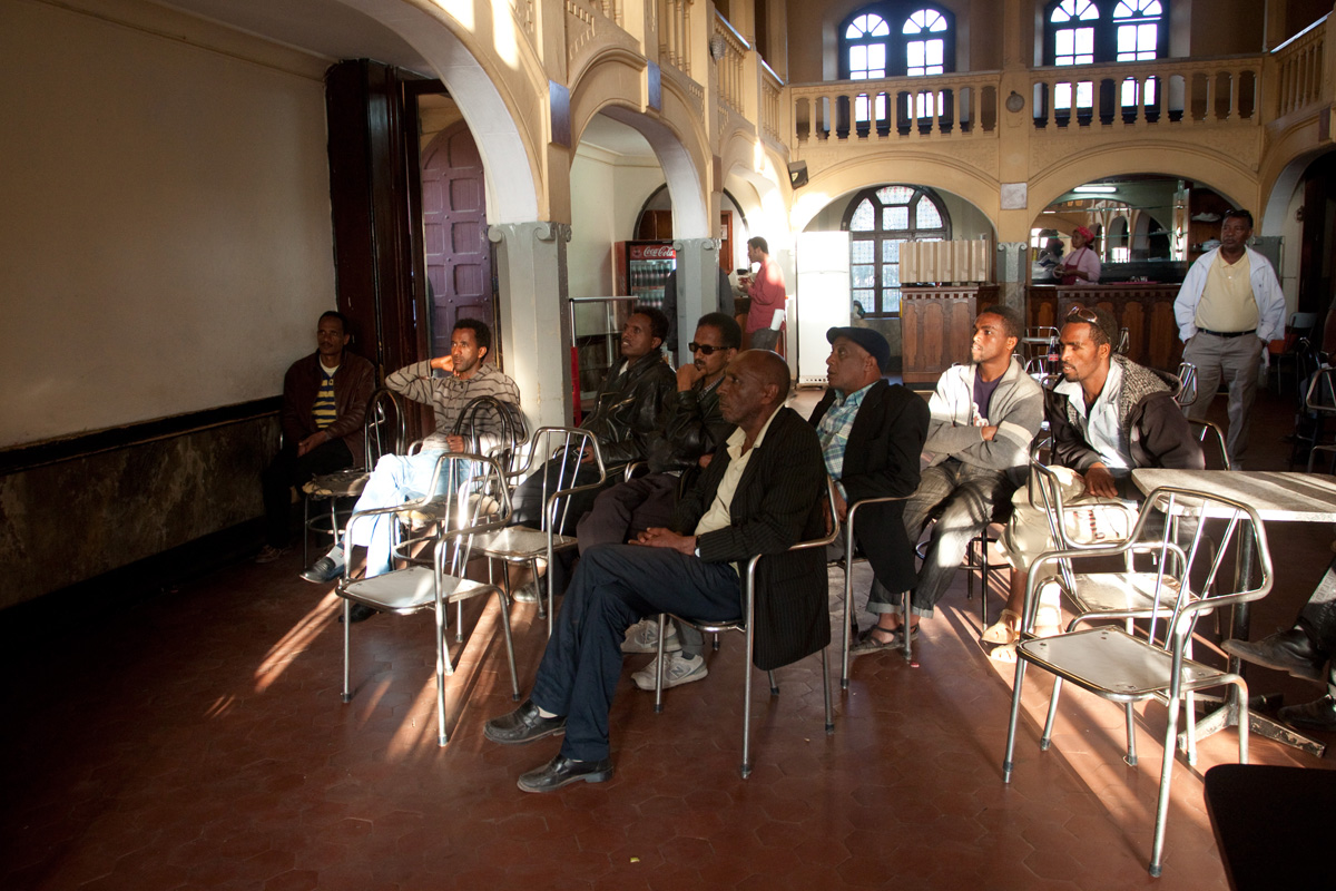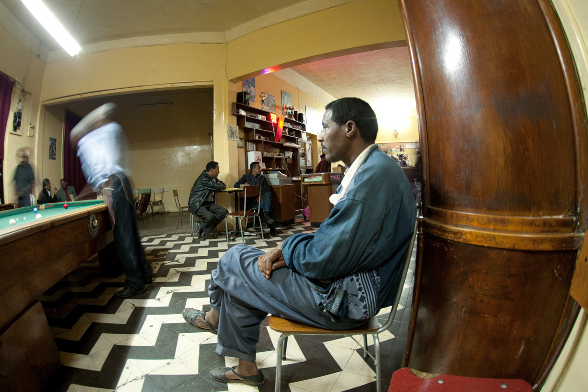 Basti pensare ai bar di Asmara, vere opere d'arte che hanno mantenuto inalterato il loro fascino o addirittura lo hanno accresciuto perchè rientrano in quel processo inesorabile di decadimento storico, con la differenza che oltre all'aspetto architettonico esiste anche quello umano ad impreziosire ulteriormente questi luoghi. Dicevamo che i bar sono opere d'arte che non hanno subito cambiamenti sostanziali sia nell'arredamento così come nelle abitudini dei loro frequentatori. Ogni bar ha ancora il proprio bancone originale sul quale poggia una vecchia ma funzionante macchina del caffè. Gli arredi come le sedie e i tavoli sono gli stesse che furono importate in quegli che fanno da corollario a lampade che diffondono luci soffuse. In sottofondo il rumore della biglia che rotola sul tappeto verde di un vecchio biliardo sgualcito. Dietro ad ogni bancone file di bottiglie di cui la maggior parte delle quali vuote ed impolverate, eredità di tempi passati, si mescolano con le bottiglie piene di araki, il liquore locale a base di anice.