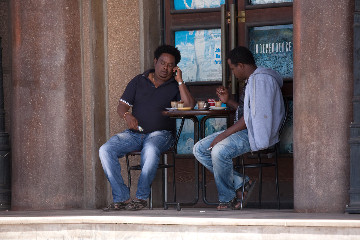 Partendo a piedi dall’estremità opposta di Liberation Avenue e proseguendo verso il centro ci si imbatte nel Teatro dell’Opera, situato a pochi passi dal palazzo delle telecomunicazioni per poi raggiungere finalmente il Cinema Impero e il Bar Impero. Sosta obbligata per incontrare amici e sedersi nei tavolini esterni al bar. La domenica il tempo trascorre ancora più lento perchè ad Asmara la domenica va vissuta con i suoi ritmi e le sue abitudini. Oggi Asmara è loro per essere nuovamente goduta.