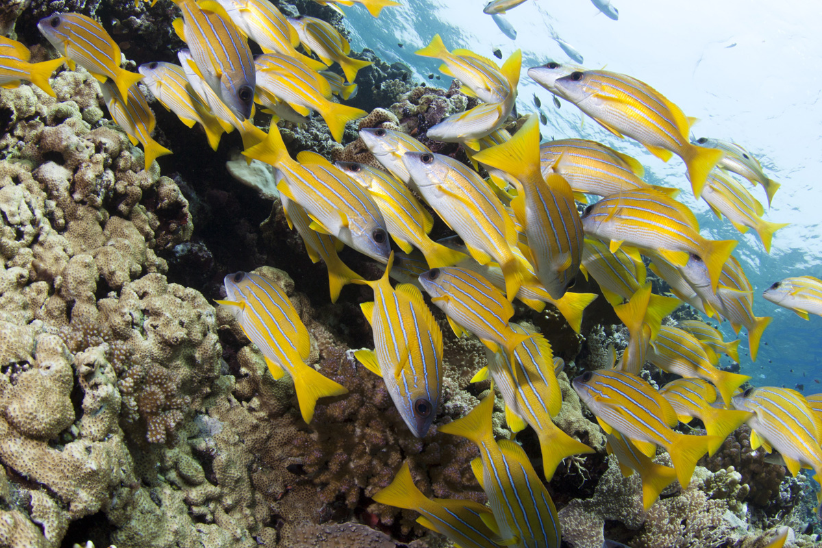Gli azzannatori che attirano maggiormente la nostra attenzione sono quelli gregari, che si muovono in banco nelle zone di laguna o lungo il pendio dei reef. Per una piacevole e corretta osservazione di questi individui dobbiamo concentrarci sul banco e non sul singolo esemplare, ovvero considerare il banco come fosse un unico pesce in movimento. Mantenendo la giusta distanza, ritenuta dal banco come quella di sicurezza, potremo osservarli nel loro procedere, notando come molto spesso all'interno del banco vadano ad inserirsi anche pesci appartenenti a tutt'altre famiglie in particolare le triglie. Se invece la voglia di avvicinarci al singolo ci porterà ad essere troppo irruenti, il banco risponderà disperdendosi e allontanandosi, con il risultato di osservare solo tante code di pesce che velocemente ci lasceranno solitari sul reef.
