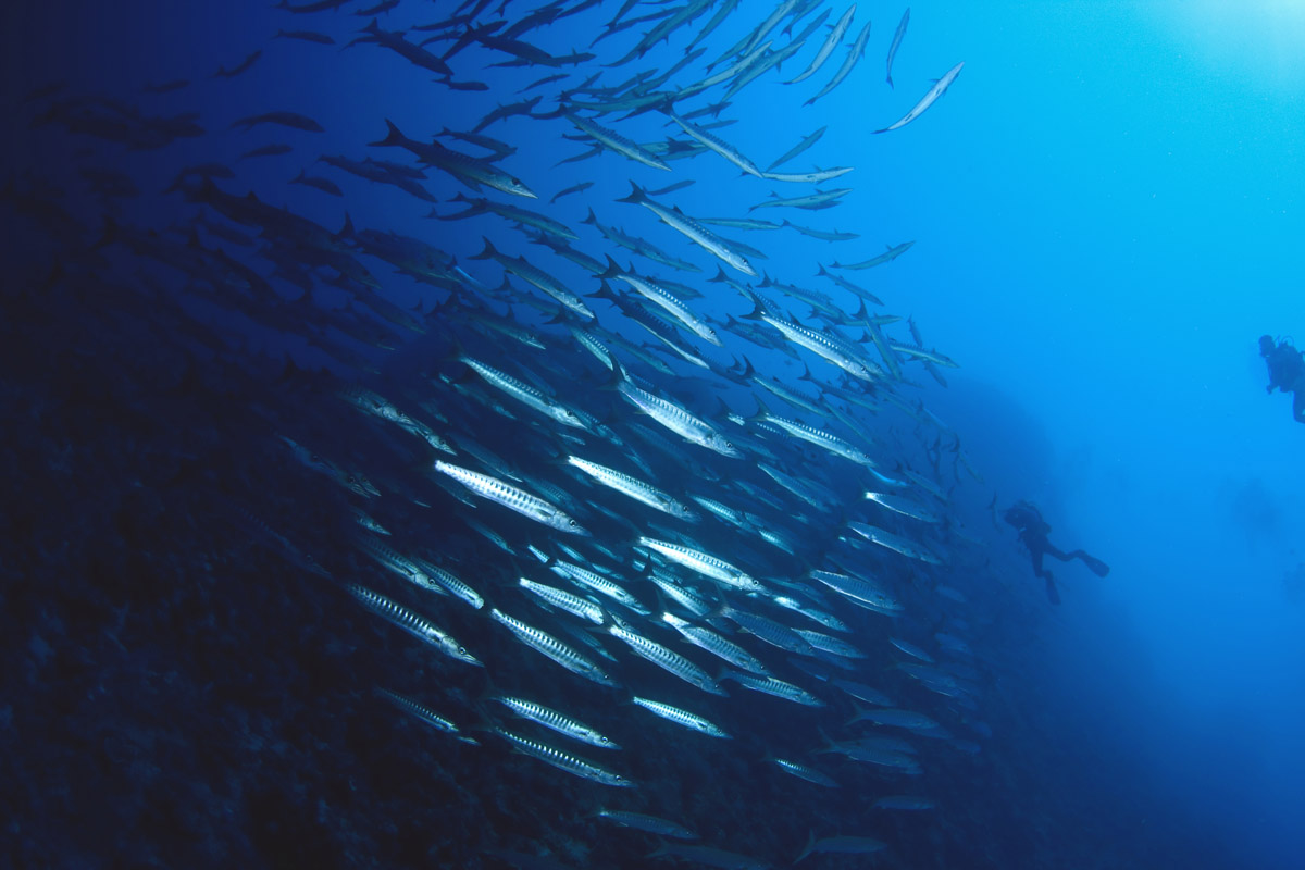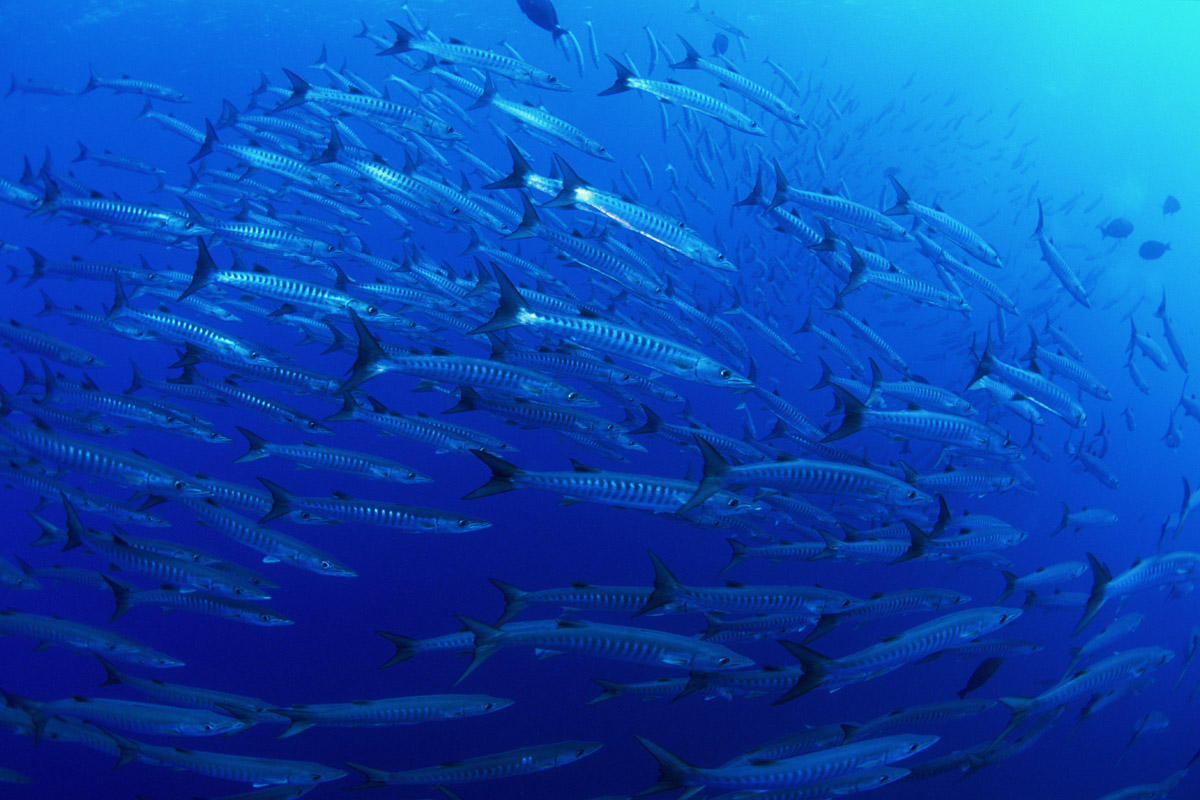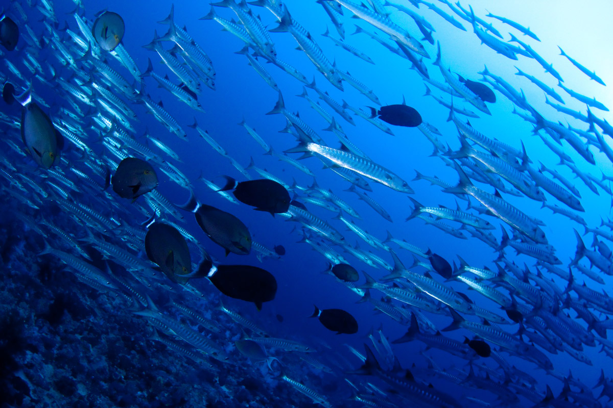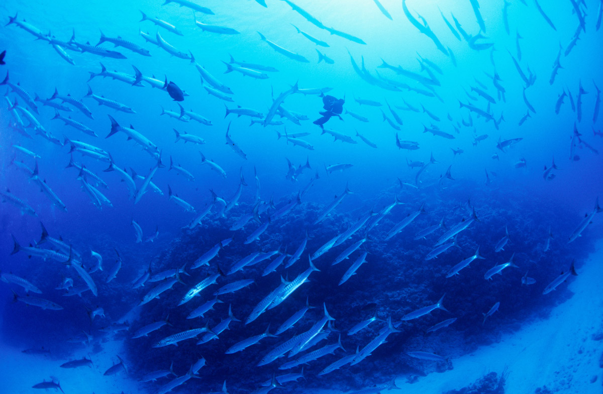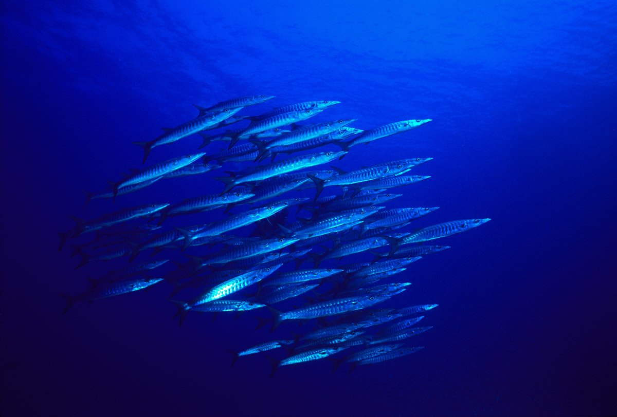 Fotografare correttamente un branco di barracuda è sicuramente un ottimo esercizio in quanto ci si scontrerà con una serie di problematiche tecniche non indifferenti legate principalmente al corretto uso della luce. Il primo problema è dato dal colore argentato della livrea che tende, una volta colpito dalla luce del flash a riflettere inesorabilmente creando una macchia sparata di luce. Ovviamente il problema sussiste il momento in cui l'immagine viene realizzata a poca distanza dal soggetto e quindi il colpo di flash sarà abbastanza potente per colpire i pesci. Il tutto complicato dal fatto che i barracuda nuotano perlopiù in grossi branchi e quindi difficilmente controllabile la loro posizione. Fatta questa premessa possiamo tranquillamente affermare che per realizzare una buona immagine di barracuda, questi dovranno essere fotografati in branco facendo molta attenzione che il gruppo di pesci, prima dello scatto formi una massa omogenea e armoniosa. Capita molto spesso che i pesci cambino direzione e il gruppo che fino a pochi secondi prima era ordinato, assume forme disordinate e poco lineari. L'obiettivo ideale è sempre un grandangolo che permetta di riprendere tutto il branco lasciando un po' di spazio anche all'ambiente circostante o ancora meglio al blu del mare possibilmente con un bel controluce. In sintesi se si fotografa con una digitale con flash incorporato, difficilmente potrà essere utilizzato il colpo di flash della macchina, a quel punto molto meglio dedicarsi alla composizione dell'immagine sfruttando il controluce, in questo modo si eviterà di illuminare il plancton presente nell'acqua. Se invece disponete di una macchina in custodia con flash a parte, come dicevamo l'obiettivo migliore è sempre un grandangolo anche spinto. Se il branco si trova, come spesso accade a mezz'acqua potrete avvicinarvi con molta delicatezza verso il gruppo di pesci iniziando a scattare e facendo molta attenzione ad usare il flash come fonte di schiarita. Per fare ciò sarà importante tenere il flash laterale per evitare il riflesso sulla livrea e sempre dietro rispetto alla posizione della custodia. La vostra posizione dovrà essere frontale rispetto a quella dei dei pesci e mai troppo sotto se no rischiate di riprendere solo strisce scure senza forma.