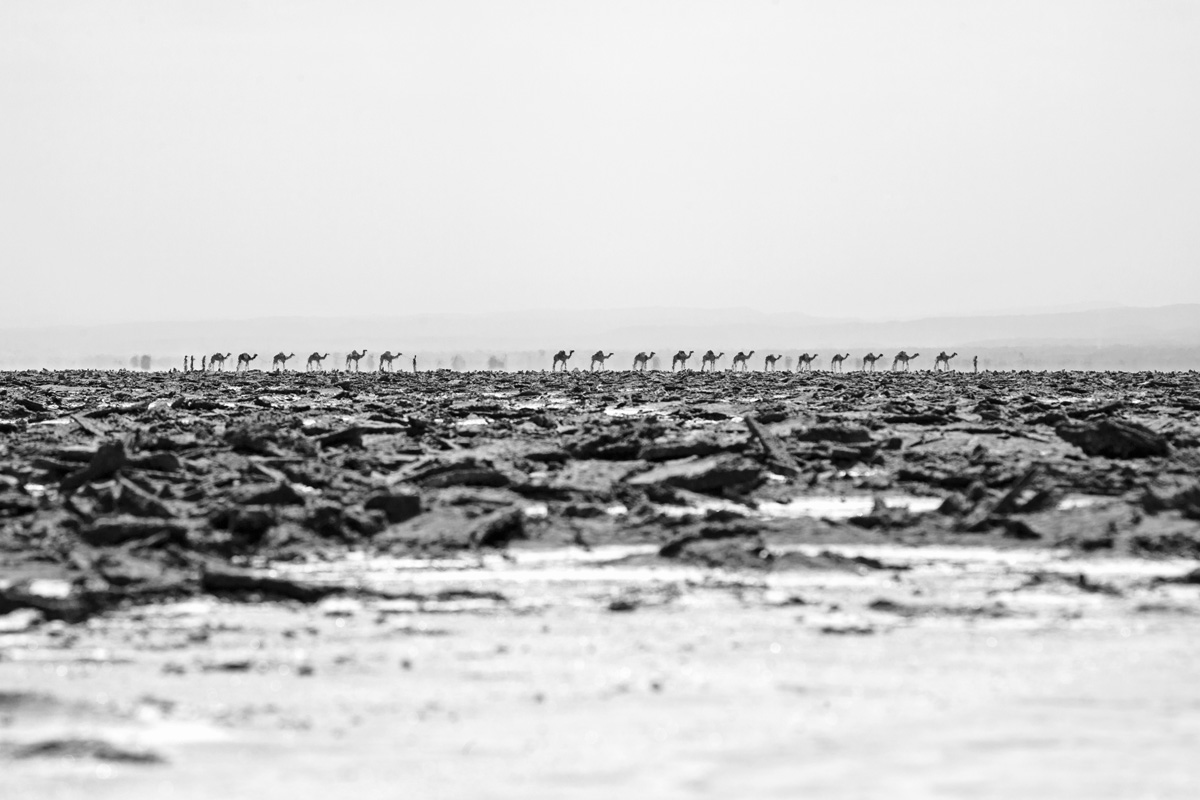 Sono solo microscopici punti all’orizzonte. Tutt’attorno un mondo senza colore.