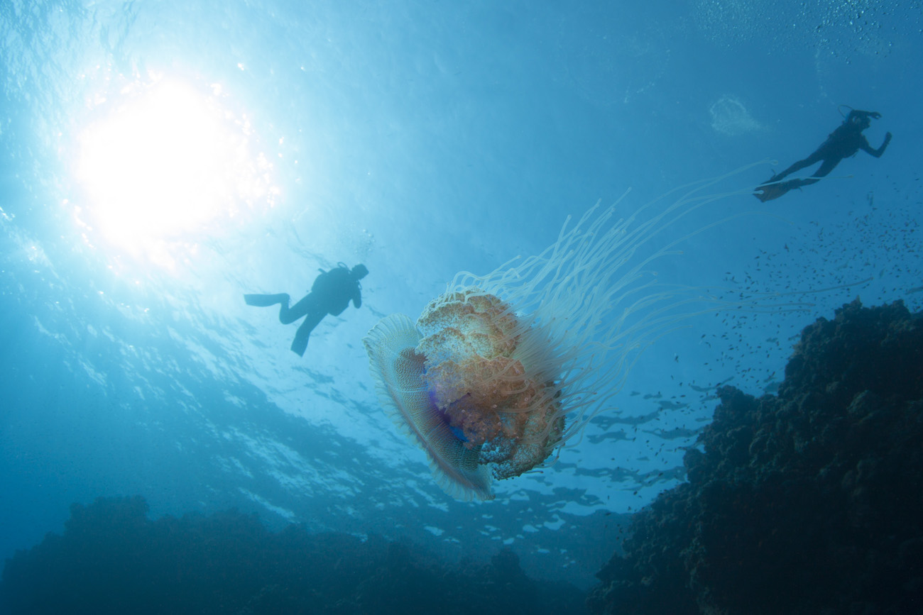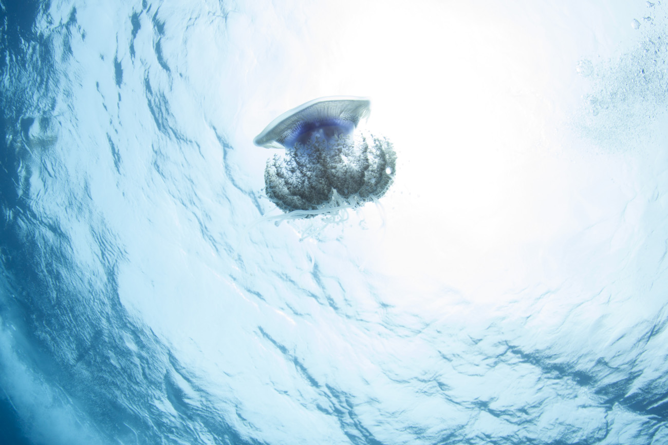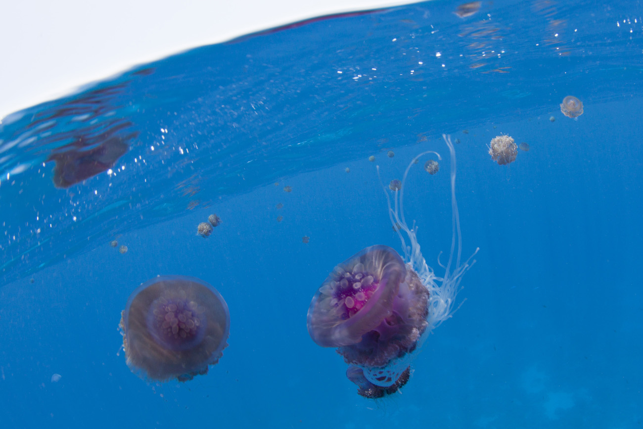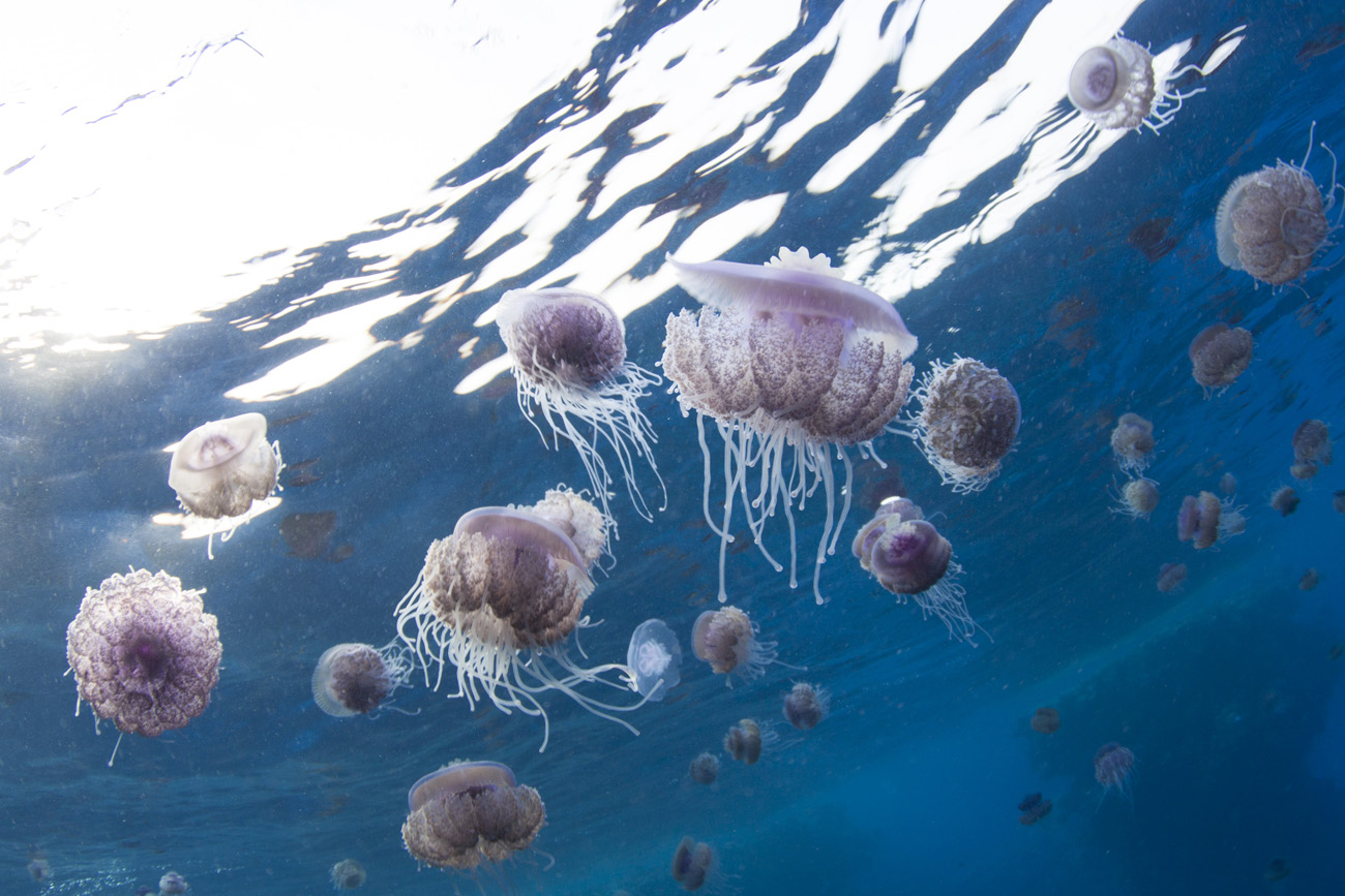 Penso alla medusa come al soggetto più misterioso che il mare ci possa regalare. Come se non bastasse tutto ciò, qualsiasi tipo di medusa si incontri è anche un soggetto straordinario da fotografare grazie alla sua forma, alla sua trasparenza e alle sue mille sfumature. Di fronte ad una medusa possiamo davvero sbizzarrirci negli scatti ma attenzione alle sue insidie fotografiche. La trasparenza può giocare brutti scherzi se non illuminata correttamente e poi ogni tipo di medusa ha un assorbimento e riflettenza diverso al colpo di luce. Quando incontriamo soggetti che galleggiano poco sotto la superficie, quasi mai sarà necessario usare il flash in quanto già di proprio cattureranno la luce esterna. L'uso del flash sarà importante solo se usato con molta moderazione facendo in modo che questo non ecceda generando la classica sovraesposizione del soggetto. Per la maggior parte dei casi è invece consigliabile sottoesporre così da donare al soggetto i sui colori naturali e al mare un blu intenso che pemetta di staccare la medusa dal fondo. Naturalmente ogni medusa ha le sue caratteristiche e in base a quelle dovremo definire come comportarci. Il nostro soggetto potrà essere fotografato indipendentemente con obiettivi grandangolari fino ad obiettivi macro. Ci sarà sempre l'opportunità di trovare una inquadratura interessante. Se doveste usare un obiettivo macro dedicate qualche attimo all'osservazione attenta, con un po' di fortuna potrete incontrare altri piccoli pesciolini che vivono in simbiosi con la nostra medusa.