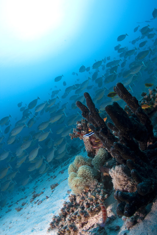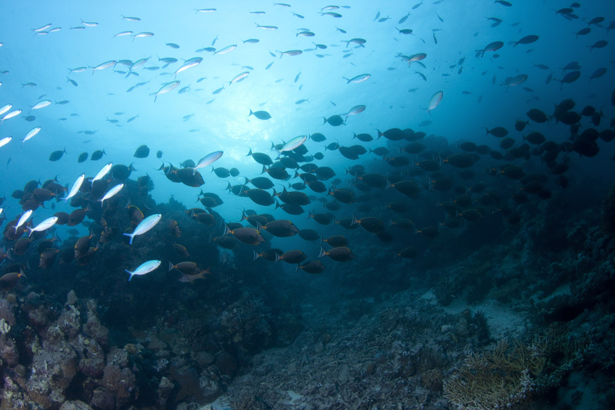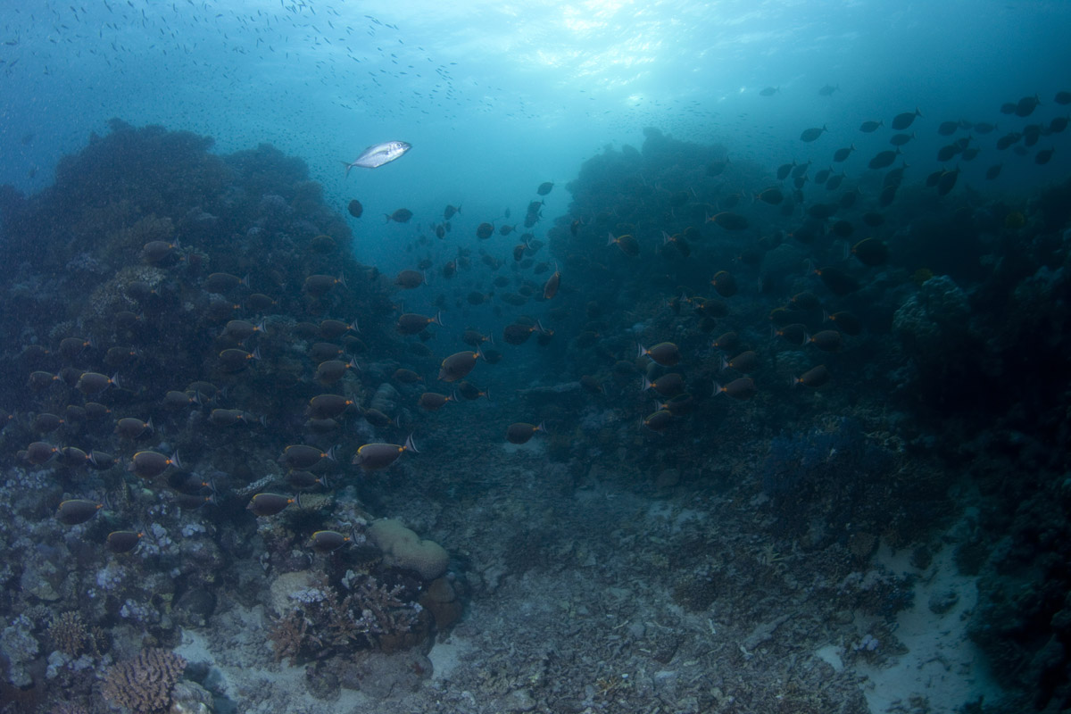 Per le specie più strettamente legate al reef è meglio arrivare lentamente, tenersi a distanza e fare in modo che non si venga percepiti come invasori, così da poter godere della naturalità del comportamento e dei vari momenti biologici che rendono più interessante qualsiasi osservazione. Per quanto riguarda le specie planctofaghe, che si trovano più distanti e che spesso incrociamo quando ci lasciamo alle spalle il reef per cercare grandi pelagici nel blu, basterà non fare eccessivo rumore per potersi trovare in mezzo al banco. Non è escluso l'incontro con qualche grosso esemplare di chirurgo in particolare del genere Naso, che staziona sopra di noi mentre gioca con le nostre bolle.