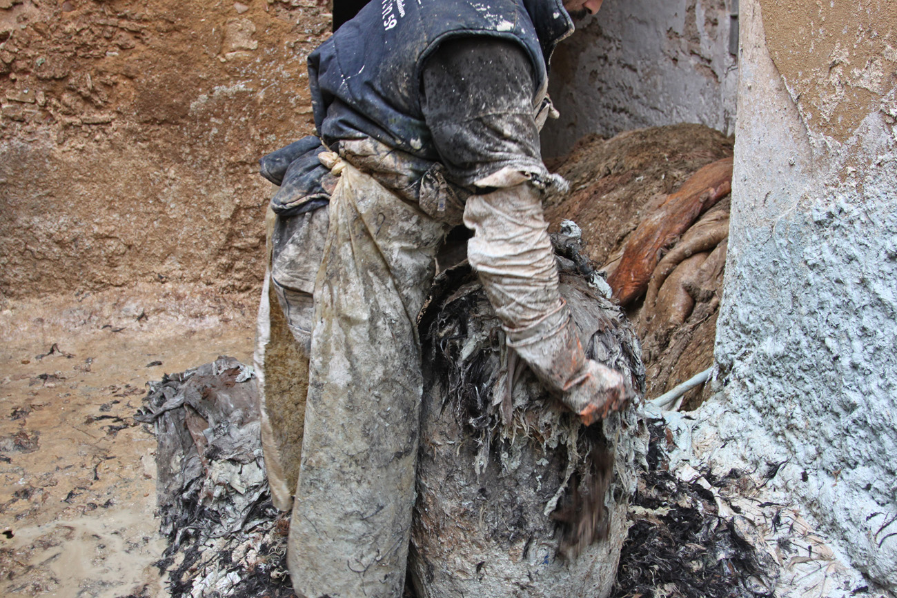 Pelli di animali scuoiati in ogni angolo: appese, a bagno nelle vasche, per terra.