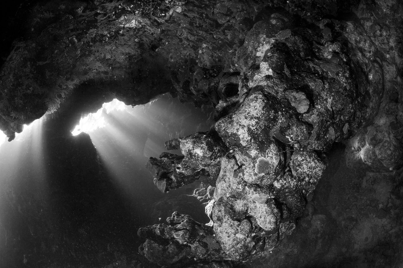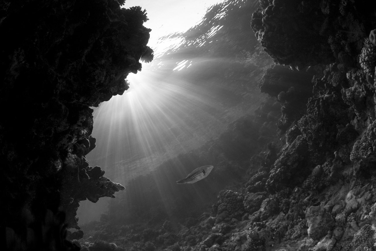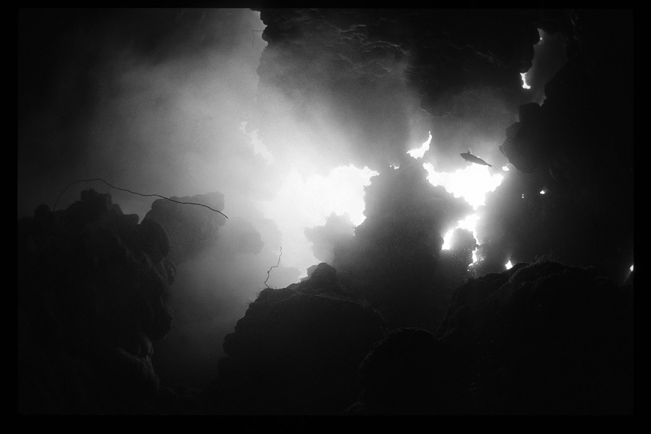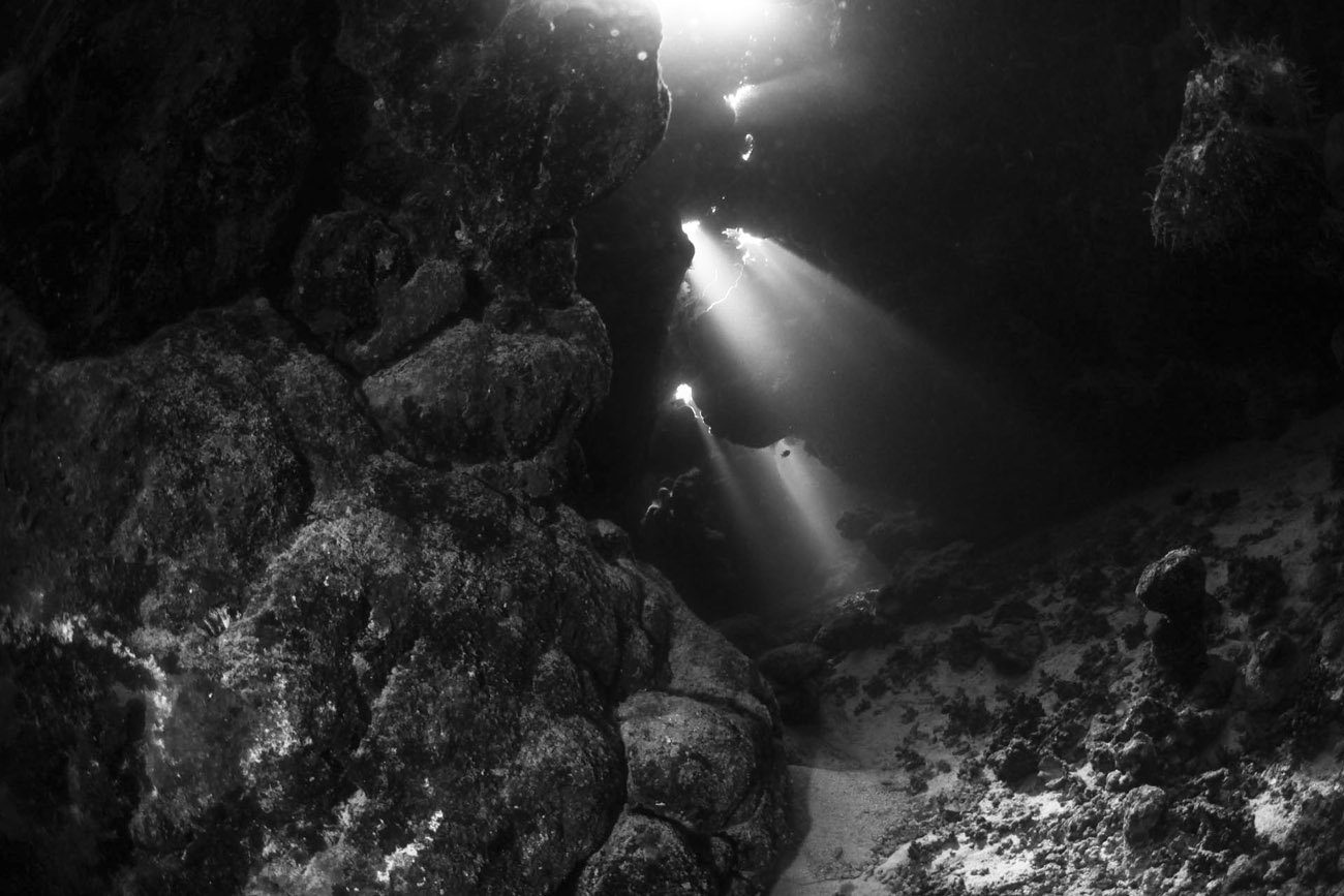 Lame di luce disegnano i contorni di un mondo buio e misterioso.