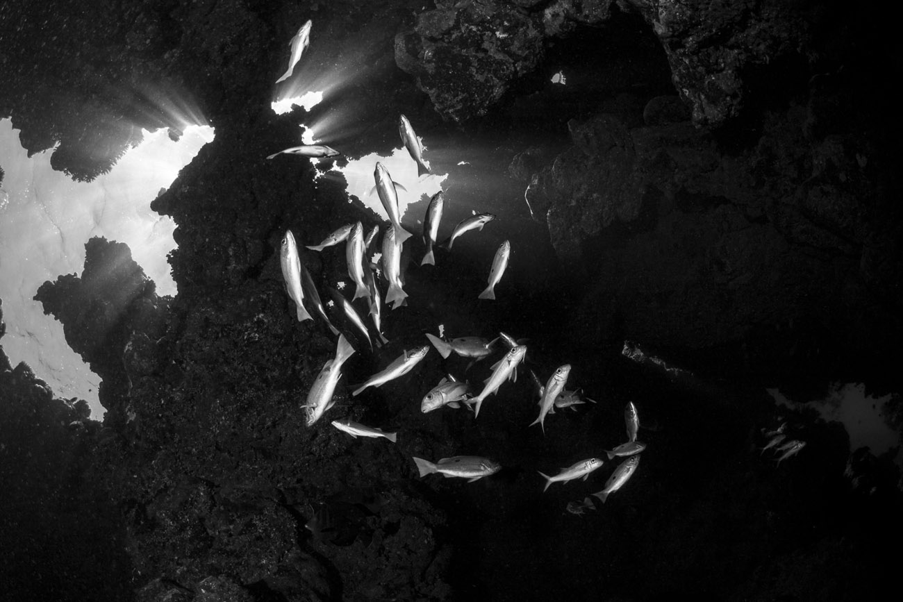 Compaiono sagome di pesci che poco dopo spariscono nel nulla.