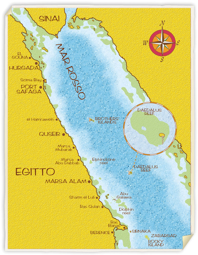 L’itinerario Daedalus - Elphinstone rappresenta uno degli itinerari più affascinanti tra quelli che si possono effettuare con una crociera settimanale. Dopo avere effettuato la check dive e una seconda immersione nel corso della prima giornata; con il calare della luce, la barca si muoverà in direzione di Daedalus reef una vera perla sperduta nel Mar Rosso dove un vecchio faro costruito in concomitanza con quello delle Brothers alla fine , svetta sull’immenso zoccolo corallino.