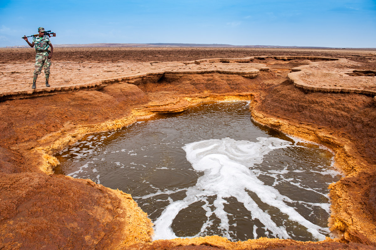 È il luogo più caldo e inospitale della Terra, pericoloso per le esalazioni di gas tossici ma anche per il vicino confine eritreo e per i frequenti assalti ai turisti.