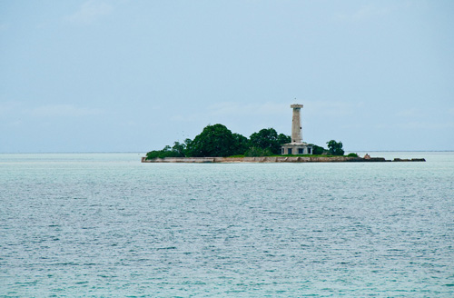 La prima sorpresa che troviamo è di natura meteorologica: navigazione tranquillissima, sole e superficie piatta come quella di un lago. Arriviamo all’alba e mi sento subito approdata in un luogo incantato: acque cristalline, piccoli scogli affioranti coperti di uccelli che qui trovano rifugio e una isoletta con un piccolo faro automatico, del tutto disabitata.Ad accoglierci, due tartarughe che si accoppiano in superficie e un minaccioso squalo tigre che spaventa un po’ il fotografo Randy, sceso in acqua a riprenderle.