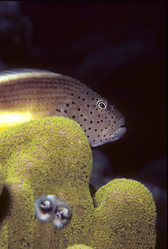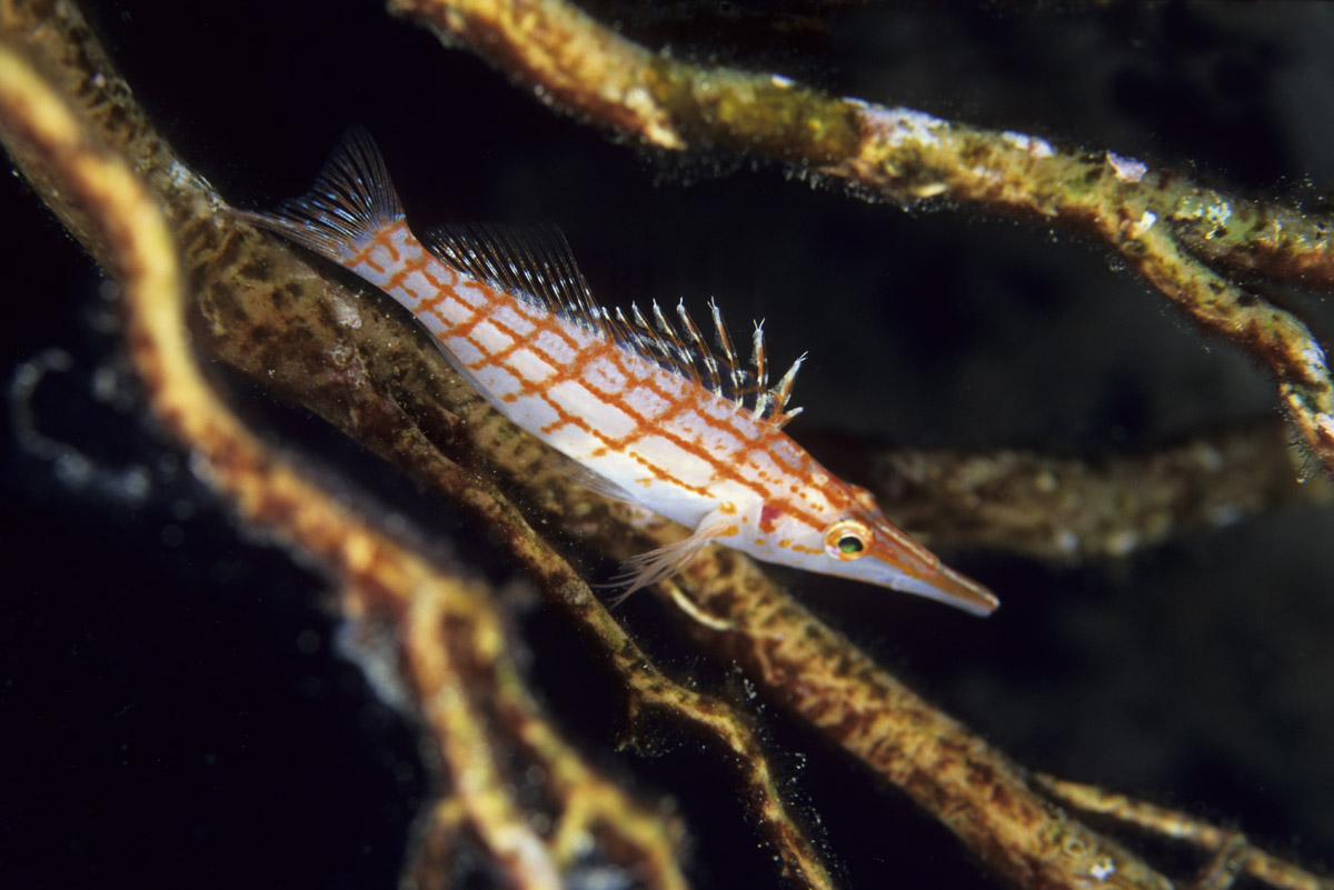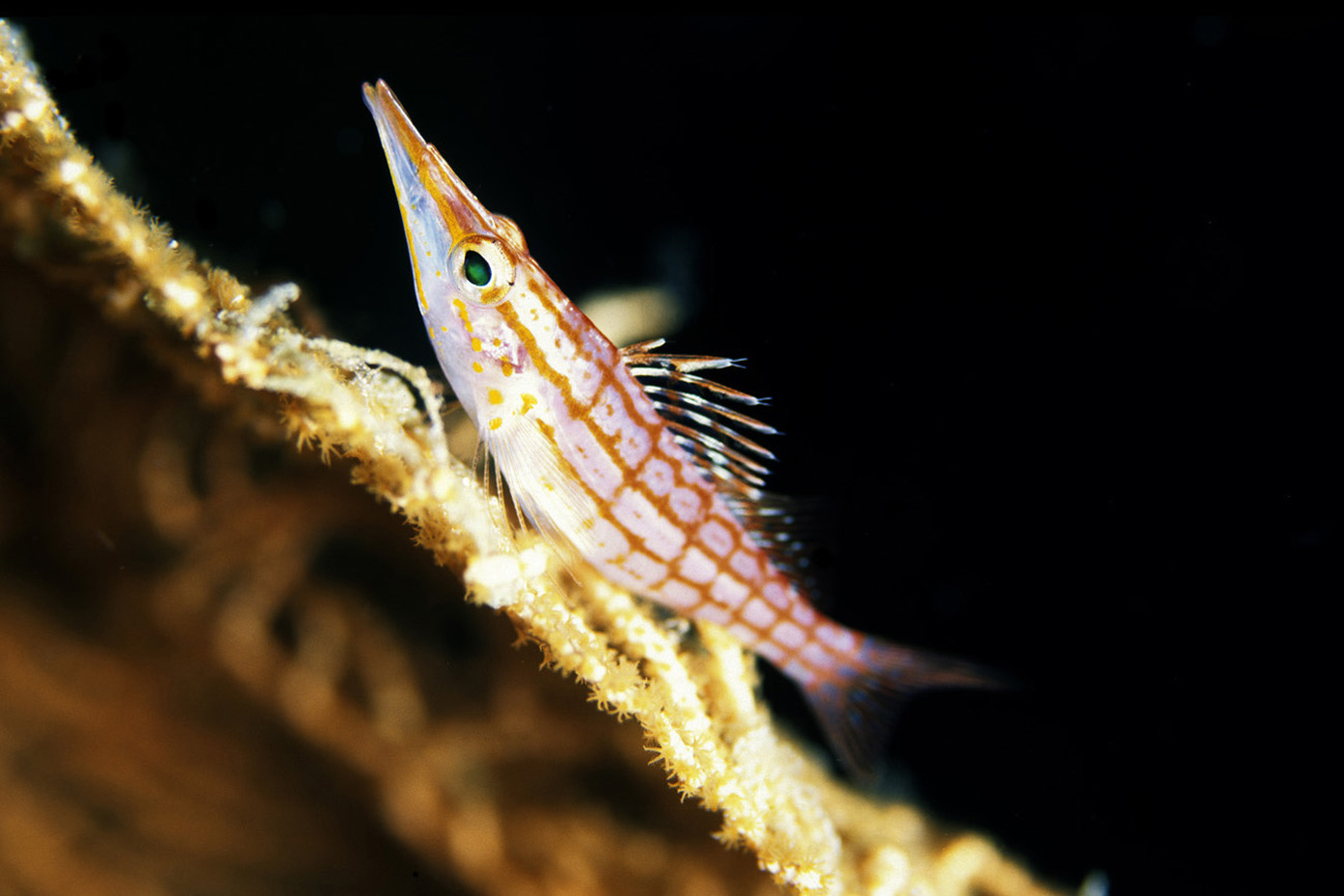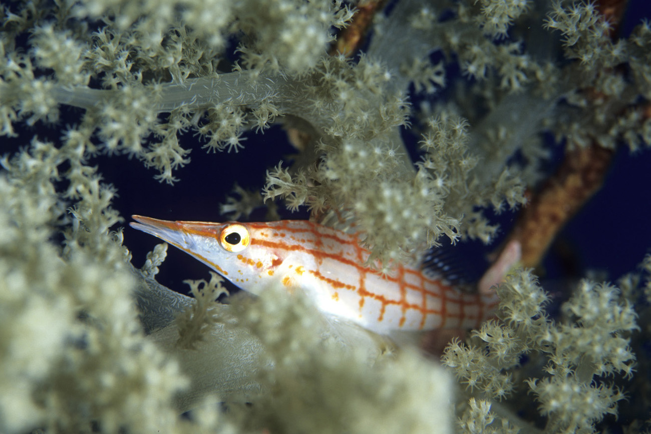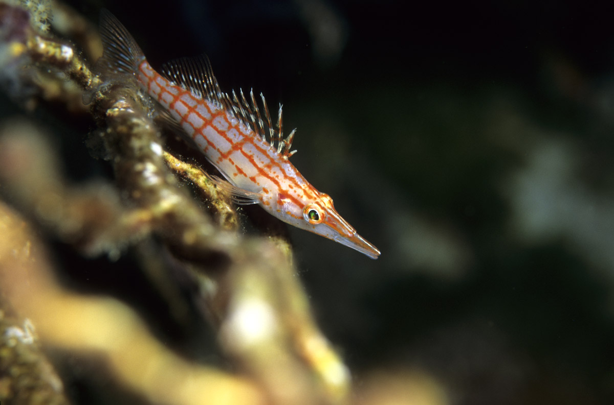 Per loro indole e caratteristiche biologiche si prestano benissimo a primi piani, le pinne pettorali permettono al pesce falco (altra famosissima specie che sicuramente avrete visto appoggiata "in agguato" sul corallo di fuoco è il Paracirrhites fosteri, il pesce falco di Foster dal tipico ventre chiaro e muso punteggiato) di appoggiarsi alle madrepore per monitorare la zona di caccia per poi piombare come fosse un rapace sulla preda. Questo significa che osservandolo da lontano e avvicinandosi con molta delicatezza ci si può portare a brevi distanze per una buona osservazione, e con molta pazienta e un pizzico di fortuna potremmo vederlo mentre si lancia sulla sua preda.