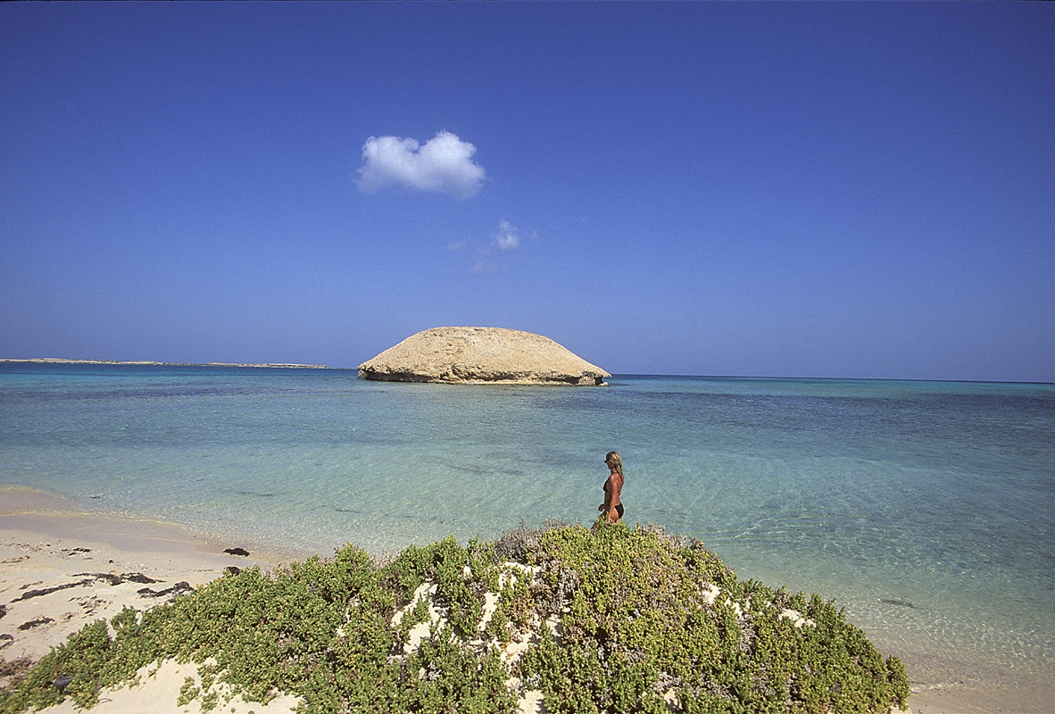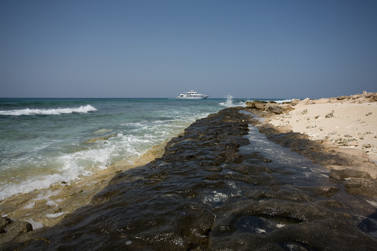 FARASAN BANK Mar Mar, Dohra, Jadir, Malothu, Danak e Jabbara sono tutte isole di origine vulcanica sul cui cratere si è sviluppata la parete corallina e successivamente l’isola di sabbia candida. Inesorabilmente rapiti dalla magia di questi luoghi primordiali ci si rende immediatamente conto di trovarsi in un mondo sconosciuto ed inesplorato. Su tutte le isole vivono colonie di volatili che rendono i Farasan Bank un vero paradiso naturalistico e uno dei luoghi più incontaminati e selvaggi del pianeta, le isole hanno tutte una forma allungata, modellate dalla direzione dei venti predominanti ed è proprio su queste punte, laddove spira più forte il vento che si radunano gli uccelli. Le spiagge sono segnate dalle tracce delle tartarughe che durante la notte raggiungono le calde sabbie per andare a deporre le uova che presto si schiuderanno e i piccoli animali compiranno a ritroso il tragitto delle loro madri per raggiungere le acque nelle quali cominceranno la loro vita di animali marini. Queste isole sembrano tutte simili, tuttavia ognuna di loro custodisce i propri segreti, a partire dalla differente composizione dello strato corallino fossile che ne determina la loro nascita. Sull’isola di Jabbara sono presenti enormi blocchi rocciosi di corallo fossile che confermano la sua antichissima formazione a differenza di altre isole dove la formazione del corallo è più recente. Osservando le spiagge si scorgeranno invece i segnali della loro storia quotidiana come pezzi di fasciame dei sambuchi, le tipiche barche dei pescatori del Mar Rosso, naufragati chissà quando e ormai erosi dal mare, lunghe cime di canapa, un remo semisommerso dalla sabbia e a ben guardare continueranno a comparire sempre nuovi segnali, come se ognuno di loro volesse improvvisamente raccontare la sua storia rimasta sepolta per tutti questi anni. Soltanto l’ammiraglio Cousteau nel 1963 aveva soggiornato per un breve periodo da queste parti e scrisse “The living Sea” nel quale raccontò i Farasan Banks come una delle aree più affascinanti esplorate nel corso della sua prima spedizione in Mar Rosso a bordo della Calypso.