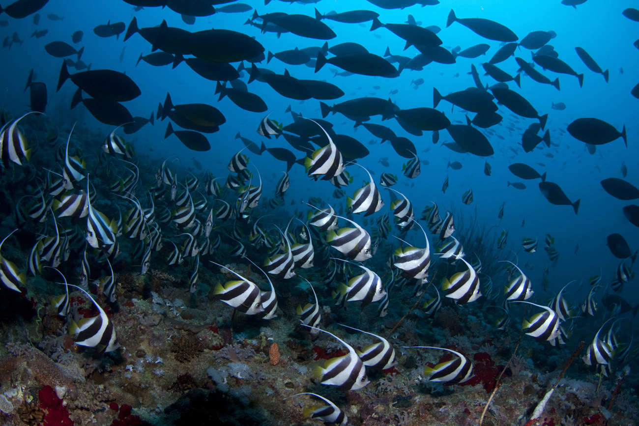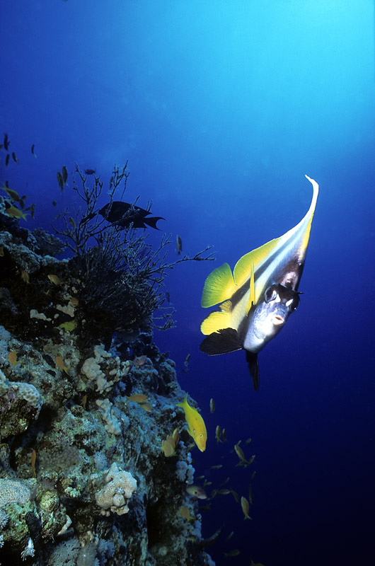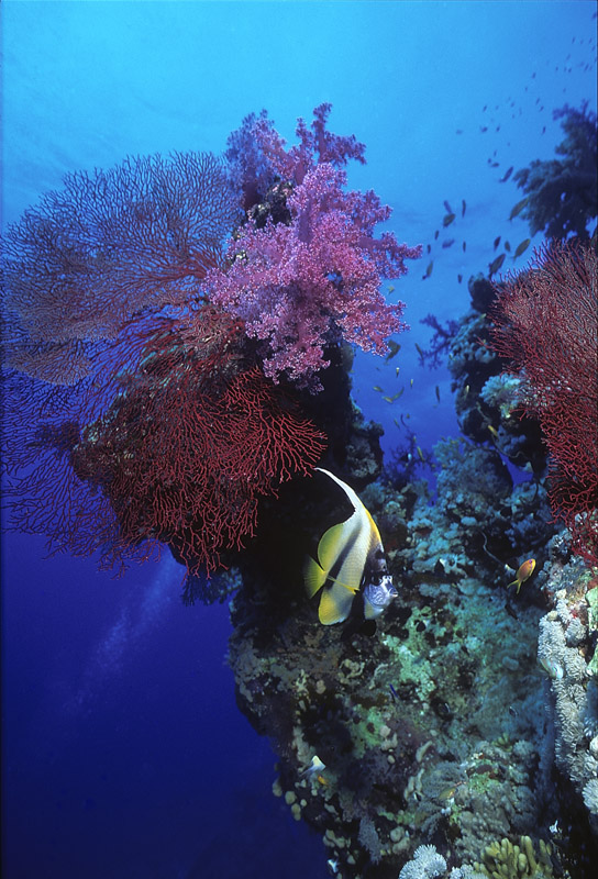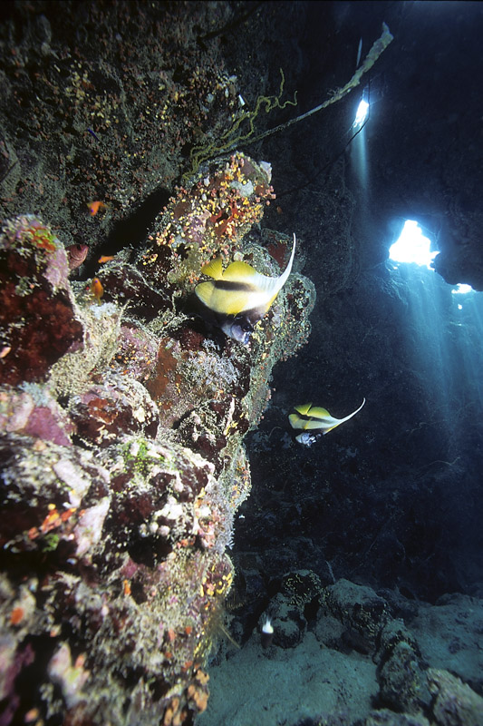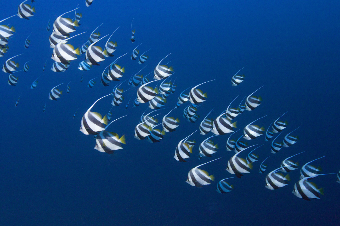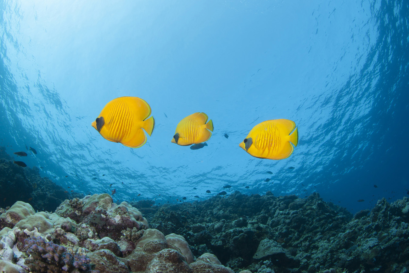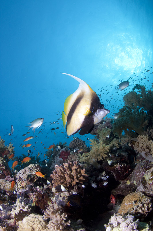 Considerata l'innumerevole quantità di pesci farfalla presenti, e considerato che ogni specie ha abitudini diverse possiamo solo parlarne in modo generico. Buona parte dei pesci farfalla, in particolare quelli più comuni denominati volgarmente con il nome di "pesci bandiera", hanno indole tranquilla, vivono su fondo sabbioso e sono perlopiù stanziali. Queste caratteristiche fanno si che diventi relativamente semplice fotografarli e soprattutto ci permetteranno di poter ambientare la nostra immagine in assoluta tranquillità. Il fatto di trovarsi in una condizione ideale non deve però diventare motivo di superficialità ma al contrario un ottimo esercizio per cercare di realizzare immagini che non siano scontate e banali. Il problema principale potrà arrivare dal fondo sabbioso che, se colpito dalla luce del flash creerà una enorme macchia di luce sparata. Quindi, non dimenticarsi mai di direzionare la luce del flash leggermente verso l'alto in modo da non colpire il fondo sabbioso. Se avrete la possibilità di appoggiarvi sul fondo sarà bene farlo con la massima cautela cercando di essere ben ancorati e concentrarvi esclusivamente sulla vostra immagine. I pesci farfalla vi offriranno diverse alternative: dall'immagine macro all'utilizzo di grandangolo. Starà a voi decidere che tipo di immagine volete realizzare e concentrarvi su quella soprattutto se disporrete di macchina ad ottica fissa. Sarebbe buona cosa quando si utilizza un grandangolo cercare di avvicinarsi il più possibile al soggetto o ancora meglio ai soggetti, visto che normalmente vivono in gruppo cercando di riprenderli senza tralasciare l'ambiente circostante e cercando di sfruttare la luce esterna. Come sempre il flash dovrà servire solo come luce di schiarita facendo attenzione a non creare forti ombre tra il pesce in primo piano e quello subito dietro.