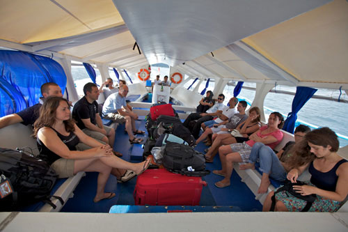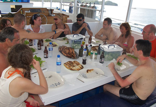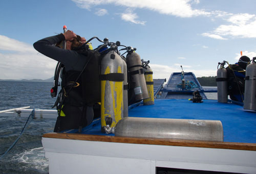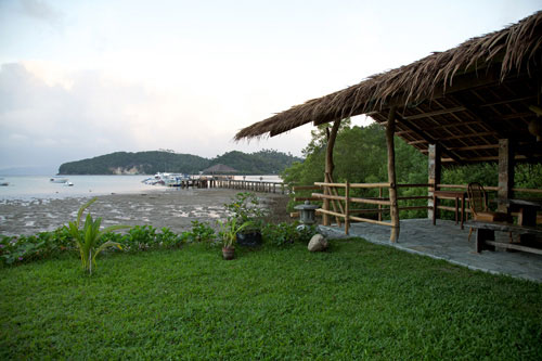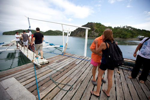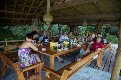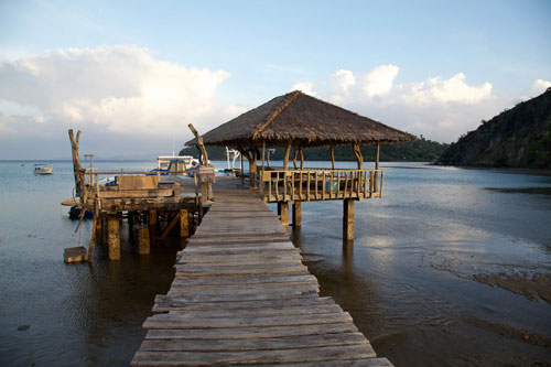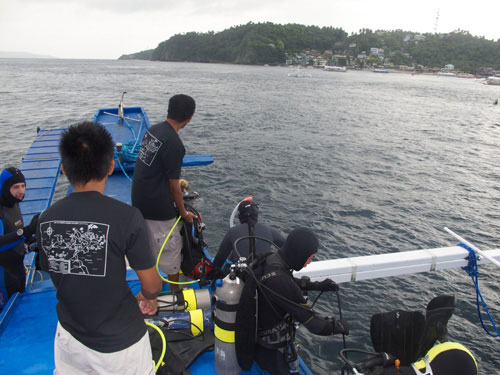 La baia dove sorge il Fishermen’s Cove è però soggetta alla marea, che sale e scende nell’arco delle 24 ore. Ecco perché il pontile è lungo alcune decine di metri per finire su una piattaforma in legno con struttura a palafitta, dove vengono ormeggiate le barche per partire verso le vicine immersioni. Anche l’atmosfera del pontile piantato nel terreno è molto suggestivo, peccato che, di contro, il terreno su cui poggia è “fangoso”, invaso da mangrovie con immense radici, molto suggestive, ma meno invitanti di un reef del Mar Rosso. Il diving ha da poche settimane aumentato la sua flotta e ora può contare su 3 imbarcazioni, di cui una barca “open” per 5-6 subacquei, una nuovissima barca di 11 metri con doppia motorizzazione fuoribordo, molto veloce ed anche molto alta di murata, così da dare un senso di sicurezza anche in navigazione veloce. La terza imbarcazione, costruita direttamente sul posto, è un’imbarcazione in legno protetta da materiali sintetici, in stile totalmente filippino come quasi tutte le imbarcazioni che si incontrano durante la navigazione e le soste nelle varie baie. In pratica un trimarano, scafo centrale e due stabilizzatori laterali, lunga 26 metri con moltissimo spazio a bordo.La tipica giornata giornata al Fishermen's Cove inizia verso le 7.30 con la colazione, e qui potete scatenarvi, se siete come me, con piatti di frutta esotica, omelettes, pane tostato e marmellata, bacon & eggs. Se desiderate anche tutto nella stessa colazione, sappiate che è tutto compreso!!! Verso le 9.00 si parte con la barca e si raggiunge il punto d’immersione, briefing, tuffo e poi una sosta di un’ora circa in una rilassante baia o in un bar galleggiante di un vicino porticciolo, dove potersi anche reidratarsi.