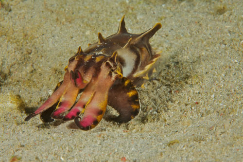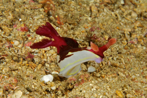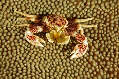 Proprio per scovare questi piccoli invertebrati, la cosa migliore è affidarsi alle guide locali che conoscono ogni centimetro della zona e riescono sempre a farci godere anche le immersioni che a prima vista sembrerebbero insignificanti. I fondali migliori sono naturalmente tutti sopra i 30 metri, la profondità media è sempre intorno ai 15 metri e con le bombole di alluminio da poco più di 11 litri (S 80) si riescono a fare immersioni da 50 a 60 minuti. Nel secondo tuffo della giornata, chè è di solito a profondità minore, si riesce a stare anche più tempo, ma quel che sorprende è la discesa sul fondo. Infatti, molte volte, può capitare di immergersi in pochi metri d’acqua, anche abbastanza vicini da terra, e trovare una distesa di sabbia con poche rocce sparse qua è là, un’immersione a prima vista davvero poco entusiasmante.Dopo poche pinneggiate, un occhio alla torcia della guida che si muove e sono subito concentrato a trovare la posizione migliore per fotografare il primo di una serie di piccoli abitanti, colorati e mimetizzati, come cavallucci, pesci foglia e “frog fish”, disegnati come solo la natura sa fare.
