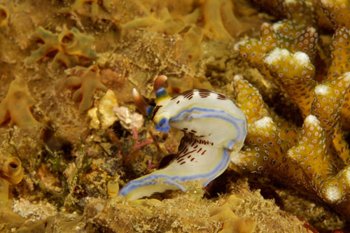 Si fa poi un secondo tuffo e via affamatissimi verso il resort, sicuri di un pranzo di gran qualità. Pomeriggio libero e cena verso le 20.00, dopo cena ancora libero completano la giornata, rigorosamente in pantaloncini corti. Non posso naturalmente tralasciare la parte subacquea. Nei nove giorni del nostro soggiorno, sono riuscito a fare solo macrofotografie. La visibilità, infatti non permetteva foto ambiente degne di una mia considerazione. Ho visto filmati e foto di altri colleghi fotografi e penso che la nostra sia stata una permanenza leggermente sfortunata, per via di alcuni fiumi vicini che portavano movimento e sospensione, a causa di recenti piogge. I colori dei fondali sono incredibili e in alcuni luoghi superano forse anche i colori del miglior Mar Rosso. Ogni tanto si incontrano correnti che possono essere contrastate se sono lievi o dalle quali ci facciamo trascinare, in caso siano più intense. Incontriamo in crinoidi di ogni colore che illuminati dalle torce sembrano accendersi, oscillando a tempo di musica, quasi a distrarci, dagli esseri marini più interessanti di queste acque: nudibranchi, cavallucci e tutto quanto non superi i 4/6 centimetri di lunghezza.