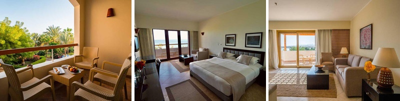 aria condizionata, e vista sul mare, sulla piscina o sul giardino. Ogni camera è