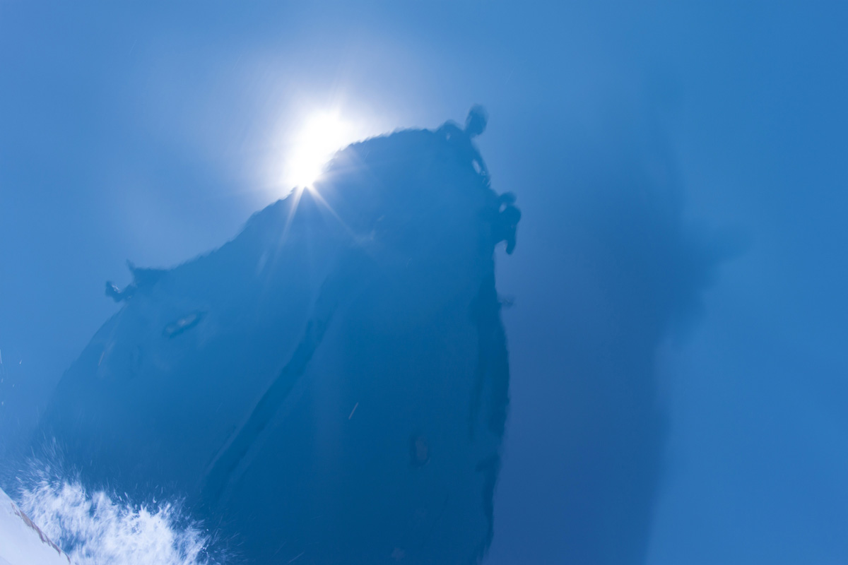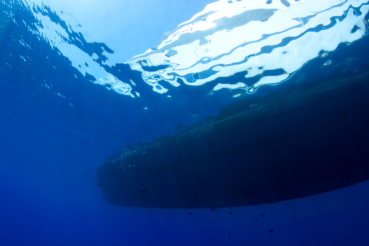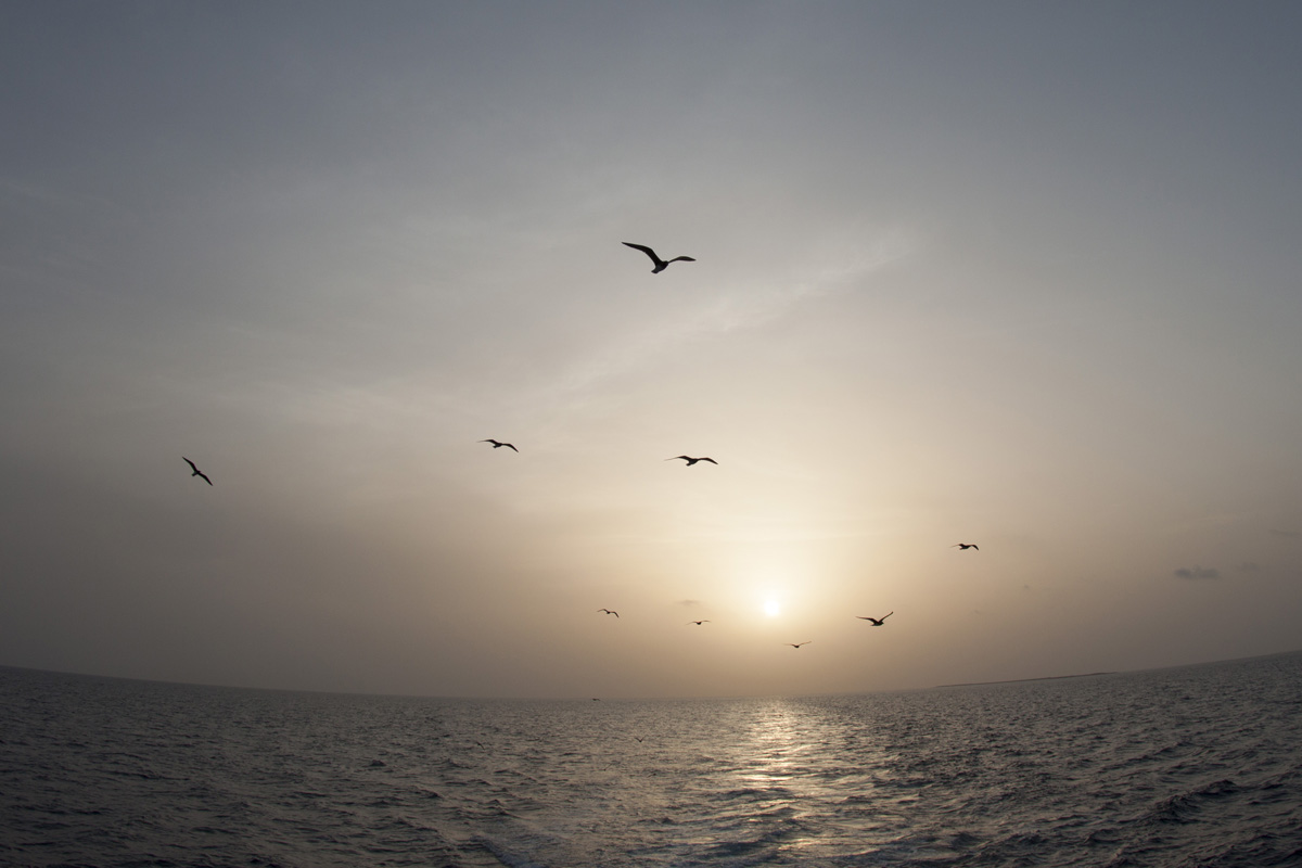 Tutt'intorno una distesa blu che si perde all'infinito mentre la prua fende le onde con movimento ritmico e costante.