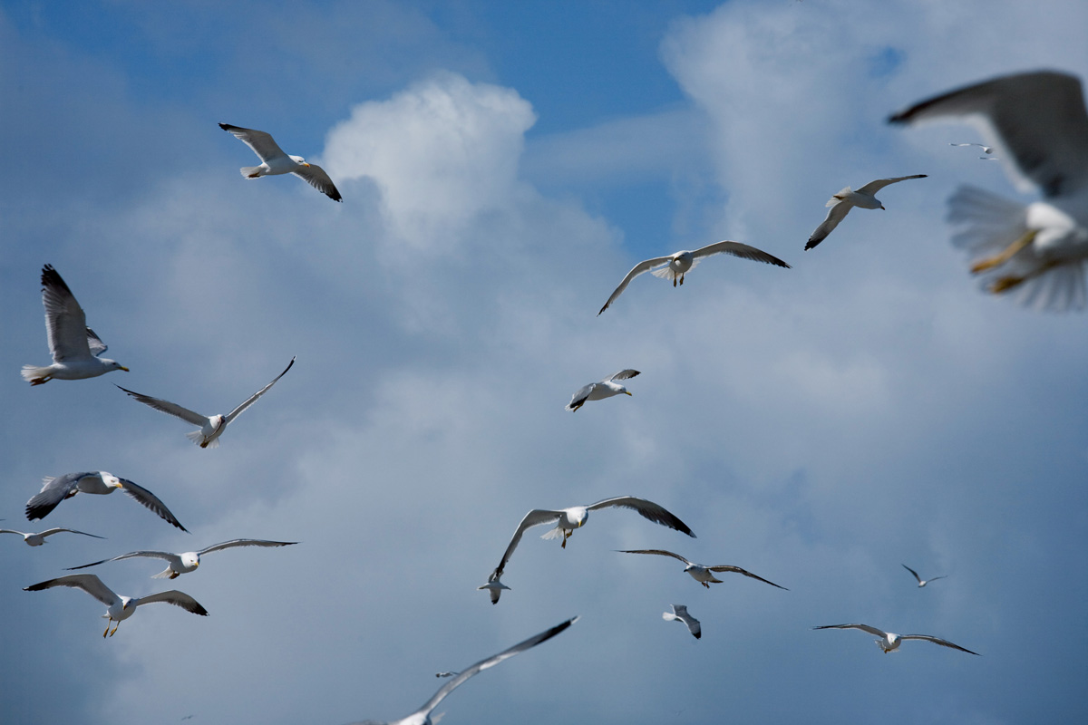 Uno stormo di rondini di mare ci accompagna all'ormeggio.