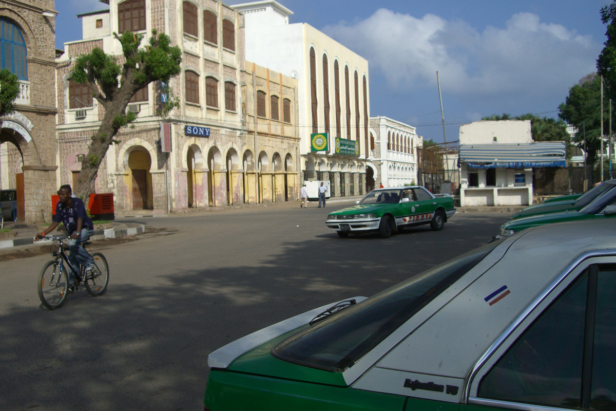 E’ il momento dell’arrivo del qat che verrà rapidamente portato in città e distribuito su tutte le bancarelle. Il prodotto si trova fresco per le strade dopo neppure un'ora. Quello del Qat è un rito che viene preparato sin dal mattino, quando si prendono gli accordi su dove e quando trovarsi; nelle situazioni più rituali amici, colleghi, vicini e parenti si danno appuntamento dopo pranzo nella casa di uno di loro. Gli intervenuti svolgono il loro pacchettino di qat, le cui foglie contengono sostanze stimolanti, molto simili alle anfetamine e che quindi sviluppano adrenalina provocando uno stato di eccitazione propizio alla conversazione ed alla socializzazione. Ma anche per le strade, nei negozi, in auto, ogni luogo è buono per masticare qat; le foglie vengono poste in bocca, nella guancia sinistra, arrotolate a palla e masticate. Nel suq sono moltissime le bancarelle nelle quali si vende qat. I locali esaminano attentamente i rami con occhio indagatore, tastano e soppesano, discutono fino a compiere la scelta tanto importante ed agognata, ed infine se ne vanno con un involto sottobraccio ed un'aria soddisfatta. Le notti di Gibuti vengono trascorse nei chiassosi bar nei quali si concentrano i numerosi militari a bere e in cerca di compagnia. Bellissime ragazze provenienti da diversi stati dell’Africa che si fermano a lavorare a Gibuti dove tutto è lecito nonostante la maggior parte della popolazione sia di religione musulmana. Il porto Un tempo questo porto è stato animatissimo e frequentato da navi provenienti dall’Oriente e dirette in Europa attraverso il Mar Rosso. La sua posizione era strategica e molte compagnie di navigazione stipularono all’inizio del secolo fruttuosi contratti per l’utilizzo di questo scalo, soprattutto quando nel 1917 fu completata la ferrovia che collega Gibuti ad Addis Abeba che consentiva un collegamento dalla costa con i territori interni delle colonie. Il porto visse un periodo d’oro e presto si rese necessario un ampliamento della banchina fino alle acque più profonde antistanti la baia per consentire alle grandi navi moderne di attraccare direttamente ai moli. Questo ampliamento fu deciso comunque dal caso, come spesso avviene nelle storie africane: nel luglio del 1926 un grande cargo cotoniero attraccato in rada prese fuoco e si inabissò proprio all’imboccatura del porto impedendone l’accesso. Ecco che improvvisamente si materializzò davanti agli occhi delle autorità del luogo la concreta possibilià di allungare la fatidica banchina … utilizzando l’immeso relitto come base per la gettata! La genialità di chi ha poche risorse è sempre sorprendente. Il declino del porto arrivò nel 1967 a causa della chiusura del canale di Suez per la guerra dei 6 giorni. Tutte le navi commerciali furono allora costrette ad effettuare la rotta del capo e il porto di Gibuti, tagliato fuori dalle rotte utili, cadde lentamente ma inesorabilmente in abbandono.