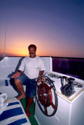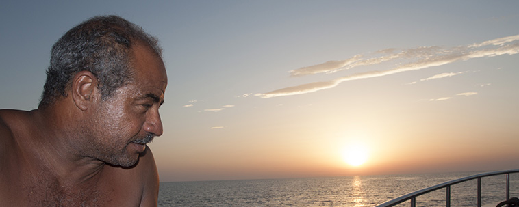 Il mare è la sua vita perché fin da piccolo navigava a bordo di microscopiche feluche al seguito di suo padre e con lui ha imparato a conoscerne il profumo e a navigare di notte seguendo le stelle. Partivano dall’Egitto per raggiungere le coste dell’Arabia Saudita alla ricerca di zone più pescose, stipati in piccole feluche dove il bambino cresceva e imparava a conoscere il suo nuovo mondo. Una scuola di vita che ancora adesso è la base del suo mestiere. Non smette di ripetere che del mare ha enorme considerazione e in qualsiasi momento e condizione, deve essere rispettato perché soltanto così potrà essere affrontato.