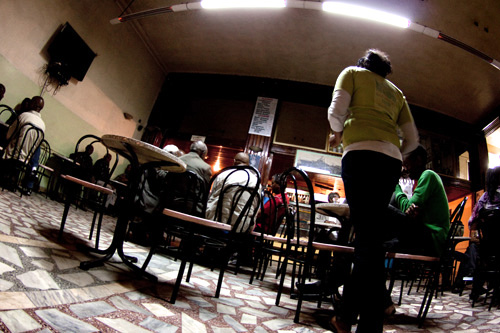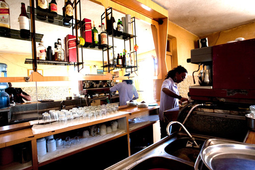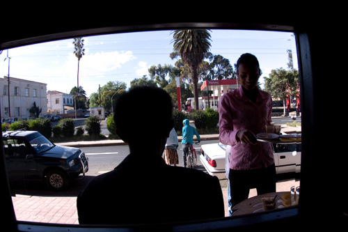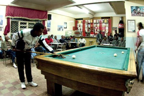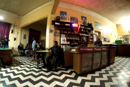 In molti bar si gioca a bigliardo, ci si estranea dalla vita “fuori”, ragazzini curiosi si affacciano, anche le donne si siedono al bar, a volte portano ai figli, tè e brioche, quelle buone brioche di una volta. In alcuni bar si ascolta musica locale, a volte contaminata da motivi occidentali.I bar dove si bevono ottimi frullati, papaia e zaituini, bisogna conoscerli, ma girando per Asmara li si trova, sia in centro che vicino al mercato della granaglie. Il più frequentato è il City Park, accanto a quella che gli italiani chiamavano la scala degli zoppi, tavolini all’aperto tra palme e bouganvillee, musica, squisiti frullati e il cinguettio degli uccelli in sottofondo.Spesso sono le donne a servire i clienti dei bar, efficienti ma distaccate, il loro ruolo è servire, sorridono ma non vogliono perdere tempo.