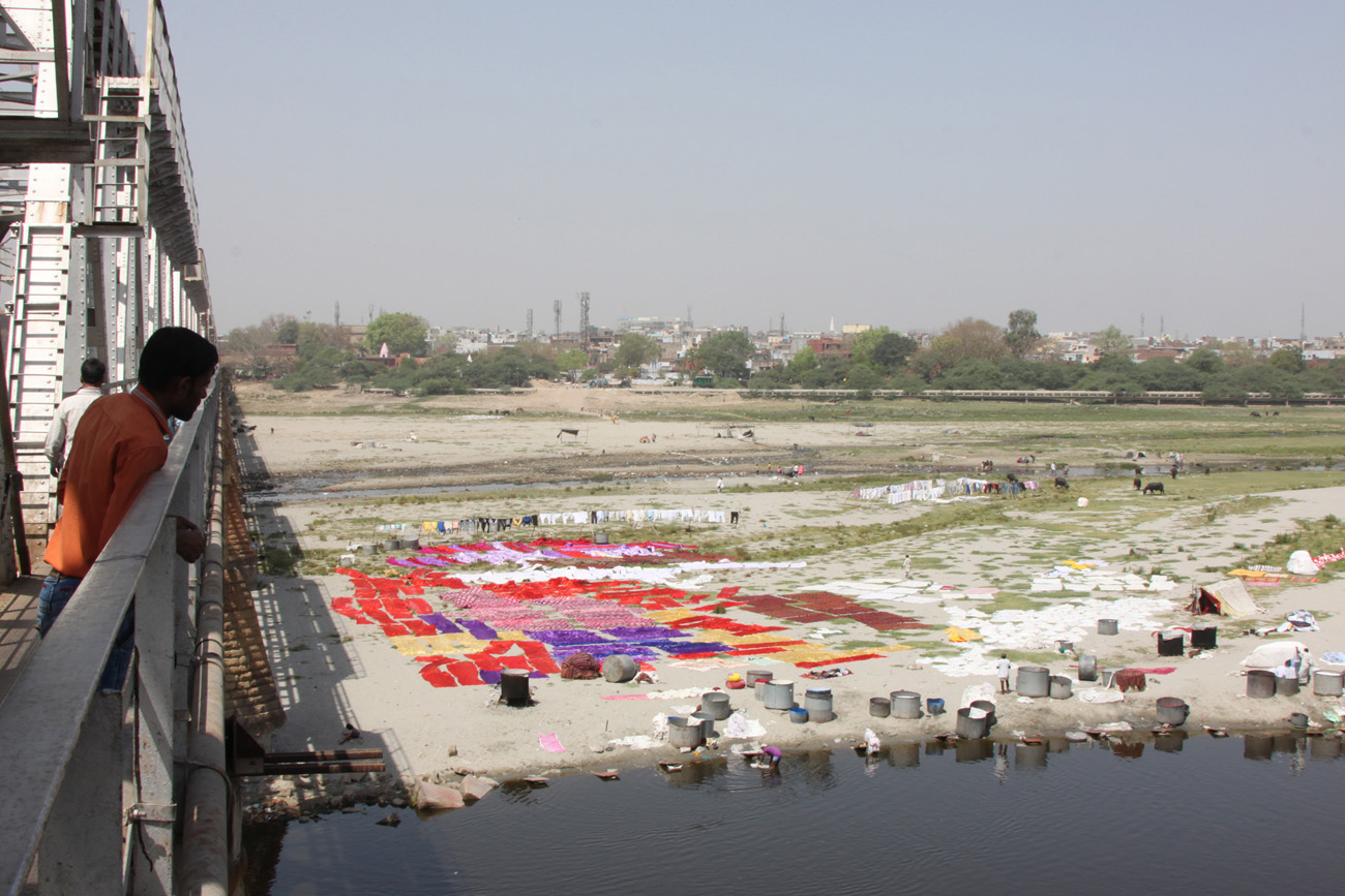 Il treno passa sferragliando e facendo tremare il ponte di ferro sul quale ci troviamo. Incontriamo la quotidianità della gente, anche se sullo sfondo si staglia maestoso il Taj Mahal, visitato da milioni di persone ignare che a pochi passi scorre il fiume e la vita.