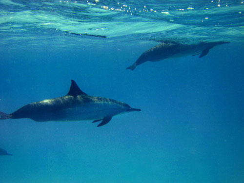 Tornando al porto di Ras Ghaleb non poteva mancare il saluto dei nostri amici delfini. Sono passati sotto la barca in cinque o sei e si sono messi a saltare: uno addirittura sulla schiena.
