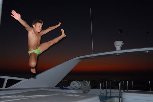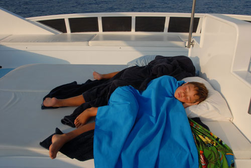 Anche questa notte nonostante il vento molto forte e la barca in movimento, dormiamo sul ponte sotto le stelle.