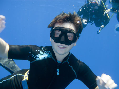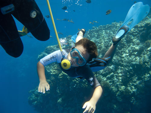Dopo il pranzo ci siamo trasferiti a Dolphin reef. Purtroppo nella laguna non c'erano i delfini ma li abbiamo visti solo dalla barca mentre se ne andavano. La terza immersione viene fatta qui e anche la notturna, ma noi bambini questa sera ci riposiamo, risparmiando le energie per domani...