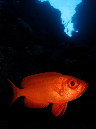 Poi abbiamo mangiato. Dopo siamo partiti per Elphinstone reef. Quando abbiamo ormeggiato, abbiamo visto i delfini. Mentre i nostri genitori sono andati a fare la seconda immersione a 40 metri, ci siamo messi a pescare e non abbiamo pescato niente ma abbiamo visto il pesce pappagallo.