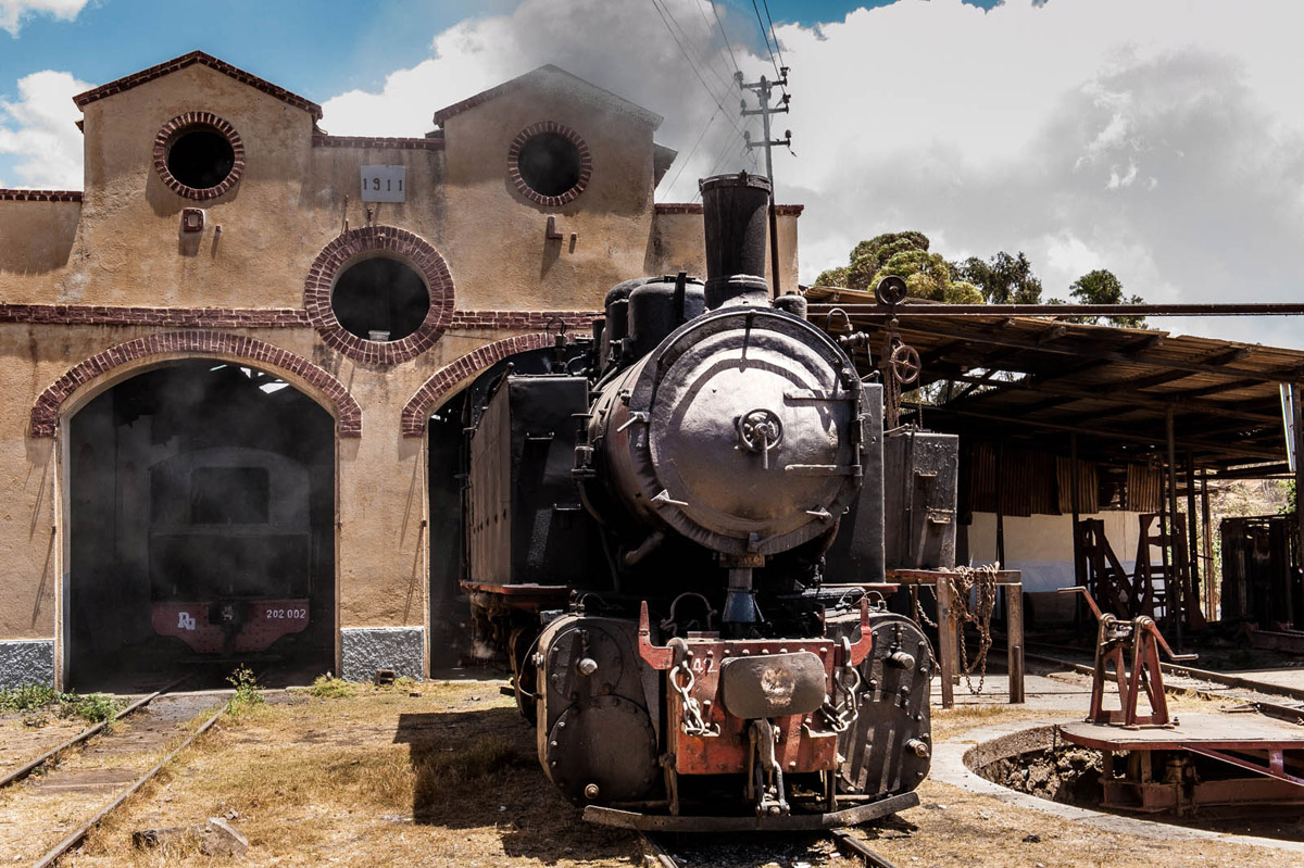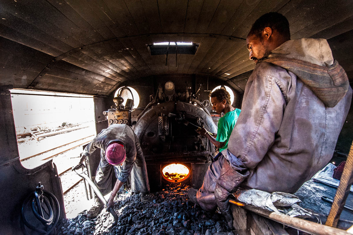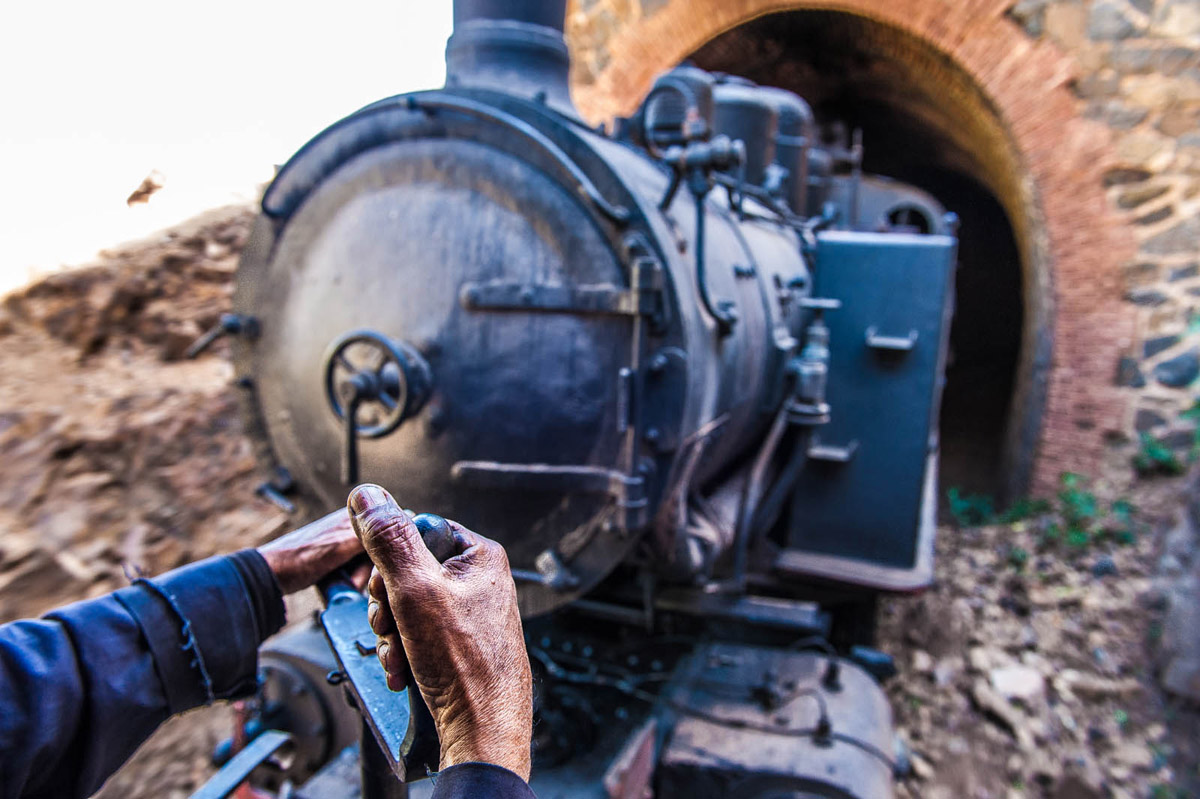 La locomotiva ci riporta di colpo a un’epoca in cui lavoro significava sudore, sporcizia e calli alle mani: all’interno, dal nero assoluto della fuliggine emergono solo la bocca incandescente della fornace e i sorrisi dei macchinisti, sprofondati nel carbone ad una temperatura insopportabile.