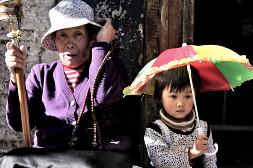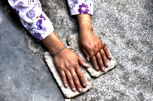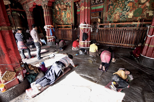 A Lhasa e in tutto il Tibet vi sono innumerevoli monasteri femminili dove riusciamo ad infiltrarci nel monastero Hani Gumpa di Lhasa e avere il privilegio di conoscere le “sorelle” che lo abitano. Hani Lun ci abbaglia con il suo sorriso e la sua cortesia innata, ci offre un fugace pranzo e noi le promettiamo di tornare a trovarla presto. Cammino senza meta per gli angusti vicoletti della città vecchia, tra botteghe, venditori ambulanti di burro e carne di yak, mi perdo e mi ritrovo, assaporo l’aria sincera di questo mercato locale e vivo questo meraviglioso privilegio come un sogno.Per un istante ho la sensazione di essere in Egitto quando finiamo nel quartiere musulmano dove svetta la vecchia moschea e dove vivono gli Hui, una delle 55 minoranze etniche che popolano la Cina. Ci fermiamo con un gruppetto di “baggers” nome con il quale si indicano i mendicanti di strada e con molta gioia offriamo loro il pranzo. I sorrisi dei bambini che riceviamo in cambio non hanno prezzo; i loro volti lentigginosi e bruciacchiati dal sole trasmettono una sana allegria contagiosa. Da queste parti l’elemosina è stile di vita, la gente chiede l’elemosina per poter mangiare durante la giornata, non per accumulare denari. Domani poi è un altro giorno.
