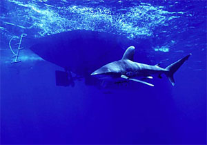 dice "shark around the boat", mi faccio tirare a bordo completamente vestito