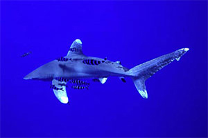 meno pesci pilota al seguito; ci gira intorno e non dimostra alcun timore;