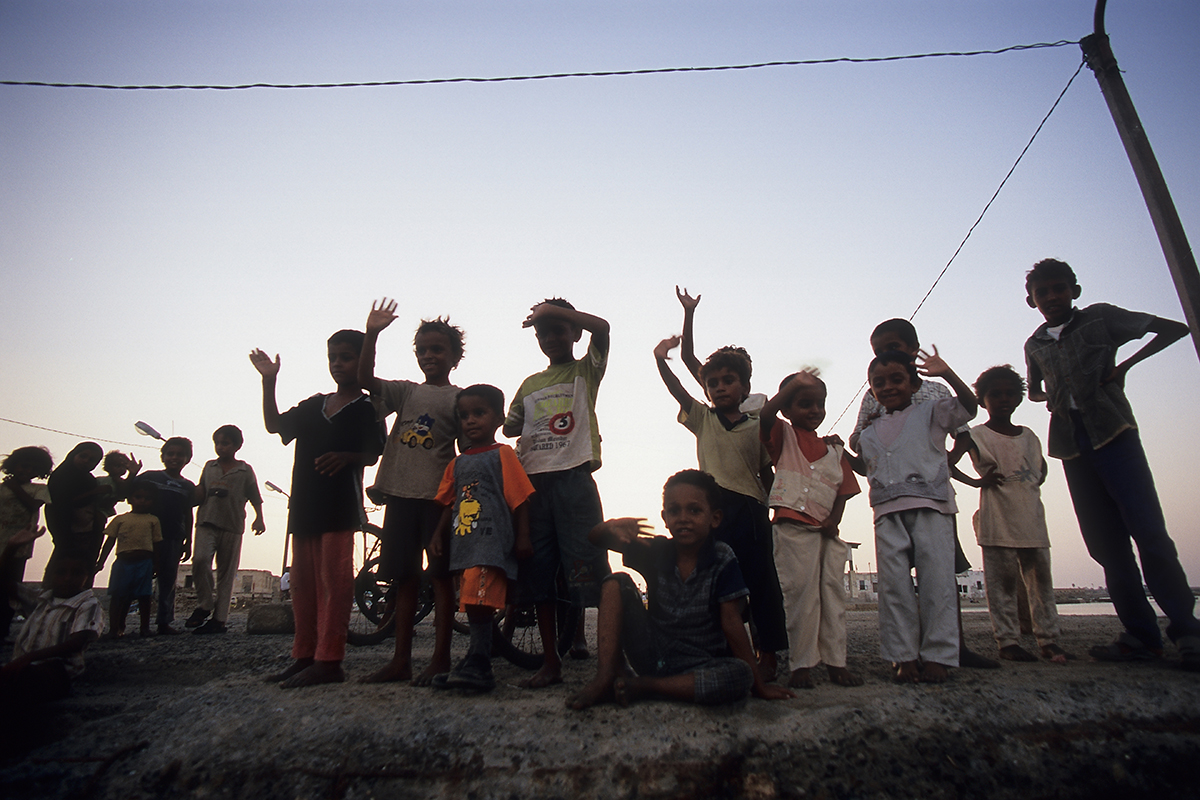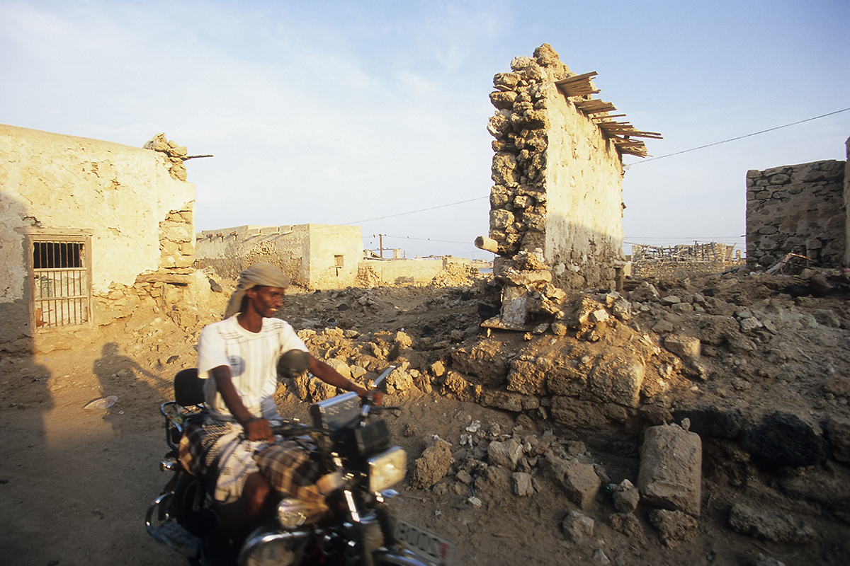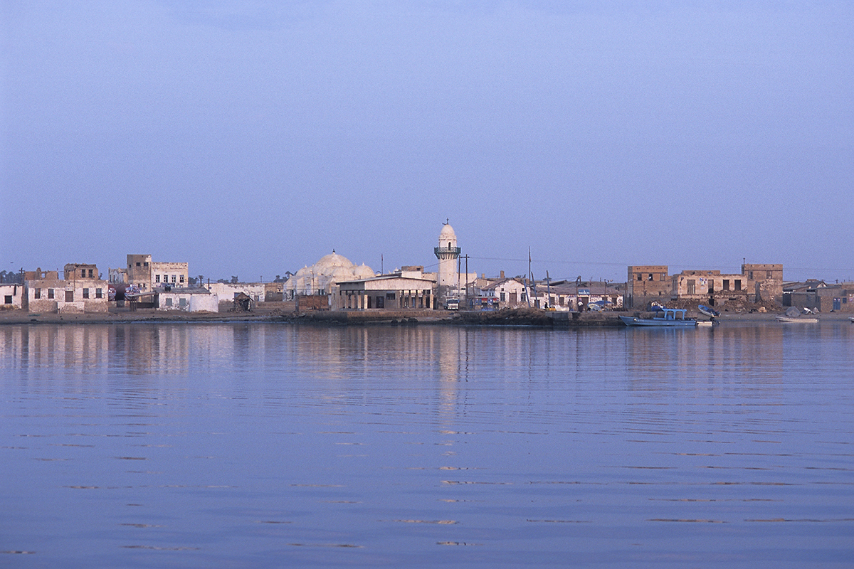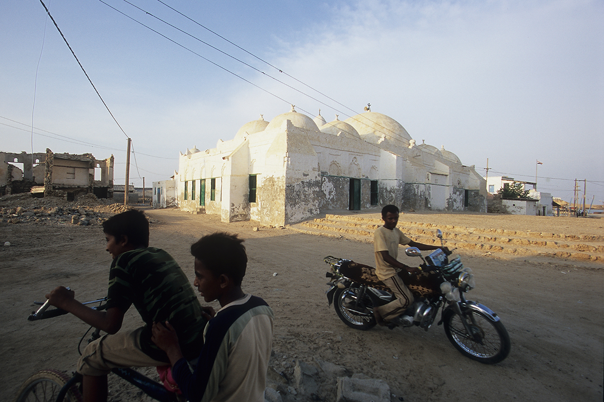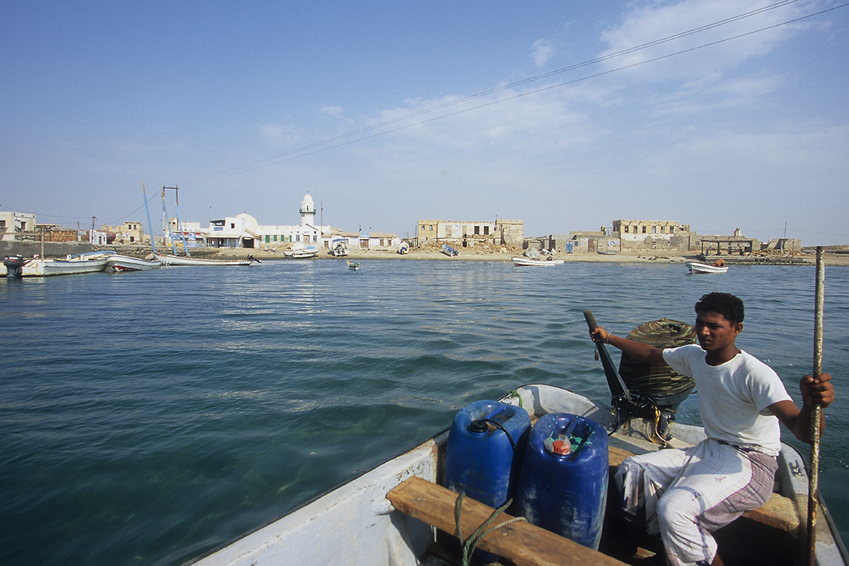 Kamaran Town chiamata anche Kamaramè è lunga 18 Km per 7 di larghezza, sorge al centro di un'ansa naturale dove sul versante sinistro si possono visitare i resti di una vecchia fortificazione che domina sul resto del villaggio. Il centro abitato conta circa tremila abitanti per lo più pescatori tutti di religione musulmana. Affacciato sull’ampia baia, il piccolo porto appare come uno scompaginato e affascinante agglomerato di costruzioni fatiscenti, ricordo ancora vivo del periodo coloniale inglese. Vicoli sabbiosi convergono verso la grande moschea bianca. Inoltrandosi all’interno, si scopriranno vecchie abitazioni ormai diroccate ricordo di un tempo lontano. I bambini si rincorrono per le strade vuote, attraversate a folle velocità da vecchi modelli di motociclette giapponesi, sapientemente personalizzate dai loro proprietari. Dalle case compaio bambini che indossano magliette da calcio delle squadre italiane, intenti a trasportare vassoi pieni di vettovaglie che divideranno con amici e membri della famiglia per festeggiare la giornata di Ramadan. Ampi teli di plastica adagiati per terra diventeranno presto il punto di aggregazione dei vari nuclei familiari che si raduneranno tutti insieme. Attraverso le finestre e seminascoste dietro i portoni traspaiono gli splendidi occhi delle donne yemenite avvolte nelle loro abaye, che timidamente ci sorridono e salutano con le loro mani sapientemente dipinte con l’hennè. Anche qui il tempo sembra essersi fermato, nulla si muove fino a quando l’apatia assoluta determinata dal digiuno prolungato, verrà scossa dal canto del muezzin. Oltre al paese di Kamaran Town, l’isola conta altri due piccoli villaggi, per il resto è un’immensa piana deserta abitata soltanto da pellicani, aironi e falchi pescatori che vivono nello spettacolare mangrovieto di Ashoura che si estende sul versante nord, raggiungibile in gommone attraverso un labirinto di piccoli canali con l’acqua color smeraldo che si insinuano nel cuore della foresta di mangrovie. Il rumore del motore fa alzare in volo un numero impressionante di uccelli che fino a quel momento erano rimasti nascosti. Individuiamo splendidi esemplari di aironi golia, grossi pellicani e esemplari di falco pescatore, appollaiati in cima agli arbusti. Sentiamo fortissimo il richiamo di questa natura selvaggia dove l’uomo si è inserito adeguandosi alle sue leggi. Il cielo è pennellato da una strisciata rosso fuoco, mentre abbandoniamo il paese e tutto il suo buonumore. I bambini si sono riuniti sul molo e si sbracciano a salutarci intonando canzoni. Le loro voci si perdono nel vento mentre con il gommone ci dirigiamo verso una piccola spiaggia isolata dove si trovano alcuni residuati bellici della colonizzazione inglese ancora perfettamente conservati. Le sagome delle grosse mitragliatrici da contraerea si stagliano contro la luce dorata del tramonto testimoniando il suo recente passato. In lontananza si ode la lunga preghiera del muezzin che dal minareto si propaga per terra e per mare e per un attimo avvolge ogni cosa.