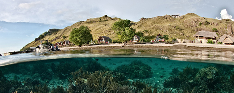 Fino al momento in cui la barca non avrà raggiunto il molo avremo la sensazione di navigare tra isole deserte e piccoli villaggi di pescatori in un mare che si fonde con il cielo. Il Komodo Resort comparirà all'improvviso con i suoi bungalows distribuiti lungo la spiaggia esposta ad oriente.