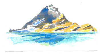 sul mare, la sagoma grigio azzurra di Zabargad. Lentamente ingrandisce e si