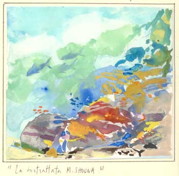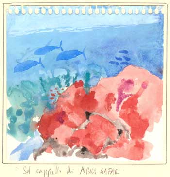 LA SQUADRAZEEV: rara specie di brontosub (brontola sempre,o quasi …) LE GUIDEANDREA & ROBERTO: bravi, simpatici, professionali. Riescono a fare il briefing senza la lavagna FINALEL’airbus 320 spinto dai due Rolls Royce si solleva dalla pista di Marsa Alam, vira sul deserto. L’ombra dell’aereo sulla sabbia rimpicciolisce mentre prende quota. Guardo dal finestrino le marse, il mare increspato. Musica nella cuffia. Dormo. Irrompono nella mia mente branchi di carangidi, barracuda, alcionari e spugne dai mille colori. Un rullo di tamburi annuncia squali grigi, mante, longimani, ma …non è stato un sogno. A . C. ( Anonimo Cronista ) XXI sec. | |