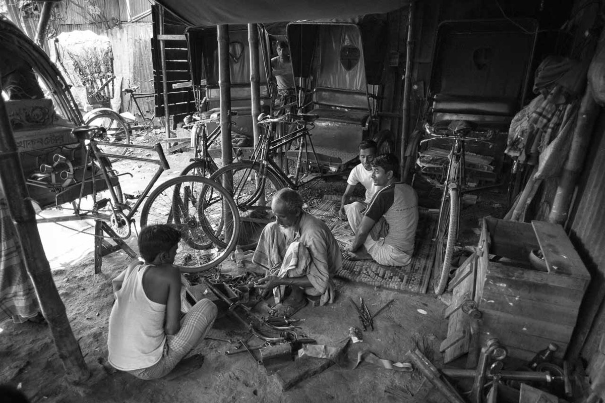 Pedalano consapevoli che questo è e sarà il loro destino fino a quando quelle ginocchia stanche e sempre più sporgenti potranno reggere lo sforzo. I Risciò sono un mondo che si muove al ritmo della pedalata, sono un fiume in piena che sembra travolgere tutto quanto gli sta intorno, sono uomini affaticati che si sollevano sui pedali senza fare trasparire nessuna smorfia di dolore o di stanchezza.