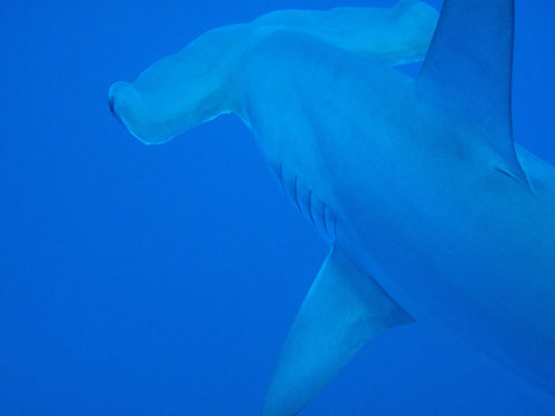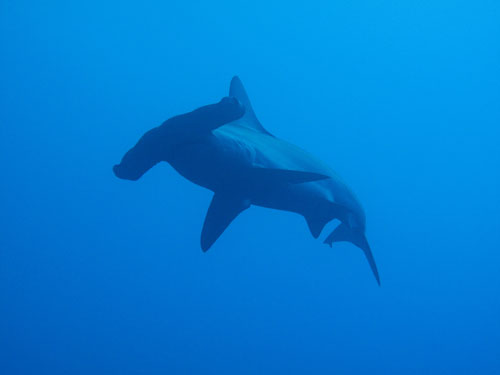 E, come per i martelli, fotografi e registi subacquei scattano e riprendono… impossibile perdere l’attimo, non è un incontro che capita tutti i giorni. Lo squalo ci gira intorno, vira e scatta, dapprima incuriosito nell’osservare noi, ospiti di questo mare che ci sta offrendo visioni da favola, per poi tornare alla sua natura, all’inseguimento delle prede, pronto ad attaccare un branco di pesci sfuggenti e così, come era apparso, eccolo pian piano allontanarsi… mentre noi rimaniamo fermi, ancora sbalorditi da ciò che abbiamo appena vissuto, nel nostro disorientamento emozionale.