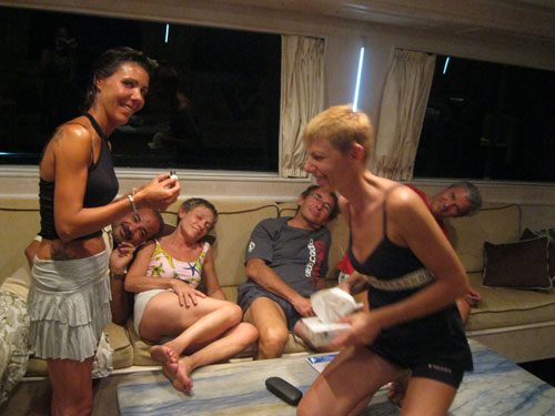 Arriva il buio della sera con le sue magnifiche stelle e noi, dopo la cena, ci ritroviamo al piano più alto della barca con tutti i ragazzi, persone conosciute da poco ma con cui si instaura da subito una complice intesa. Così per caso nascono canzoni storpiate, revival di vecchi successi e motivi dedicati a questo fantastico cielo sopra di noi… a poco a poco qualcuno inizia ad abbandonare, la stanchezza accompagna verso le cabine anche gli ultimi instancabili reduci e il sonno rigeneratore caratterizza questa notte in cui, in sogno, riviviamo la giornata appena vissuta e fremiamo per ciò che vedremo domani.